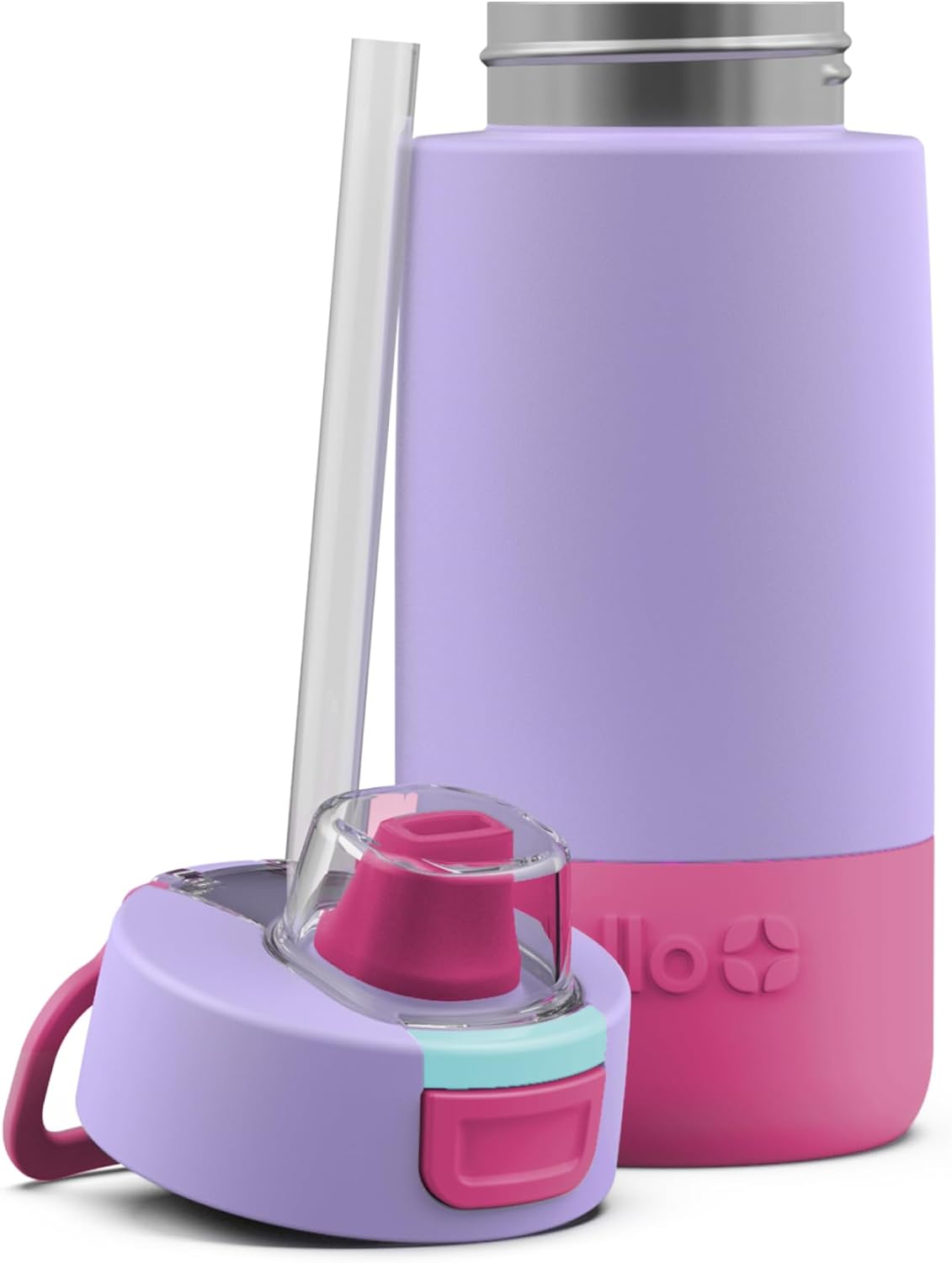 Kids Colby 12oz Stainless Steel Insulated Water Bottle with Straw and Built-In Silicone Coaster Carrying Handle and Leak-Proof Locking Lid for School Backpack, Lunchbox, and Outdoor Sports
