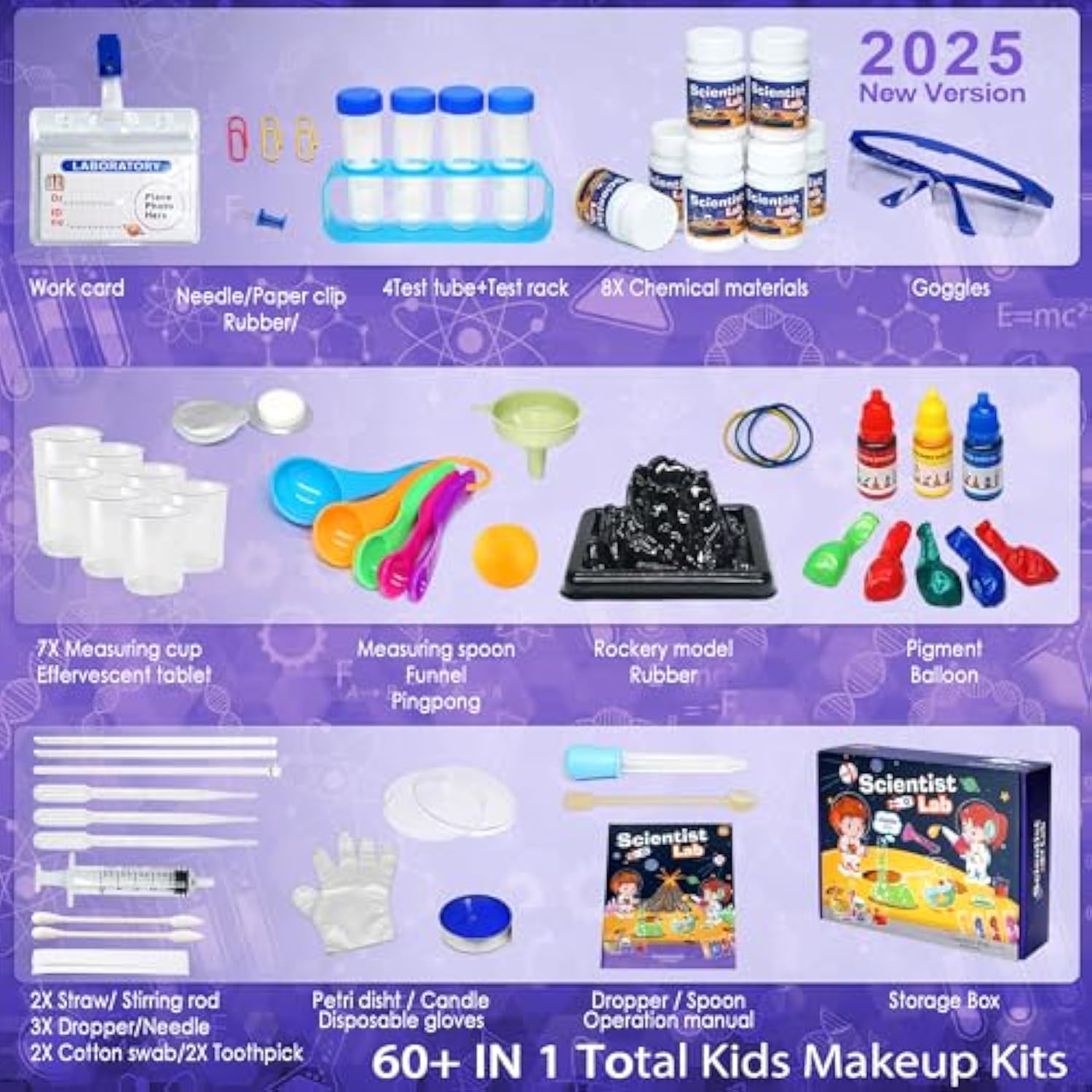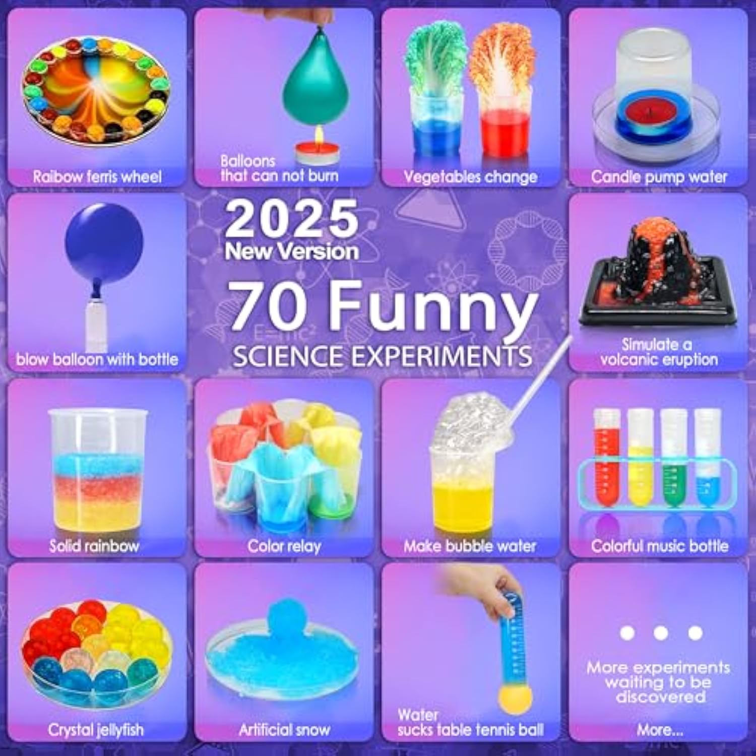 | [70 Science Experiments For Kids] This Science Kit The Basic Edition Of The Science Kit For Kids, With 70 General Science Experiments Ranging From Classics Like An Erupting Volcano To Making Crystal And Much More. Give Kids An Excellent Intro To Chemistry With This Hands-On Kit! This Complete Introduction To Chemistry Kit Is Full Of Real Lab Equipment And Step-By-Step Instructions For 36 Chemistry Experiments Students Can Do Anywhere - No Matter Their Science Background | | [Educational Games For Kids] Many Children Are Born Scientists - They Love To Question And Experiment Whenever They Come Across Something New. So Investing In A Science Kit Is A Good Move. Let Children Swim In The Vast Ocean Of Scientific Knowledge. You Child Will Be Able To Learn Important Chemistry Topics Through Hands-On Experiments, Making Concepts Exciting And Memorable | | [60+ Pcs High Quality Science Toys] High Quality: This Is An Important Feature, Not Only For The Result Of The Project But Also For Your Sake. When You’Ve Purchased Our Science Kits For Kids That Will Work Like It’S Supposed To, Your Child Is More Likely To Be Enthusiastic - And It’S Safer. A Wealth Of Experimental Materials, Experimental Equipment, So That Your Child Fully Enjoy The Fun Of Science Experiments | | [Safe And Easy To Use Science Toys] - All The Laboratory Equipment Is High Quality And Designed To Last. Durable Measuring Spoon Measuring Cup, Real Test Tubes, Etc. It Comes With Protective Gear To Keep Your Child Safe From Possible Splashes And Spills. The Experiment Manual Has Easy-To-Follow Instructions - Designed To Make Science Experiments More Accessible For Young Learners | | [The Ideal Gift For Your Child] If You'Re Looking For A Detailed Chemistry Set For Kids Or A Gift For A Science Enthusiast, This Professional Chemistry Set Is The One We Recommend! Whether It'S A Birthday, Christmas, Halloween Or Other Holiday, This Science Kit Is The Ideal Gift For Boys And Girls Aged 6 7 8 9 10 11 12 | |