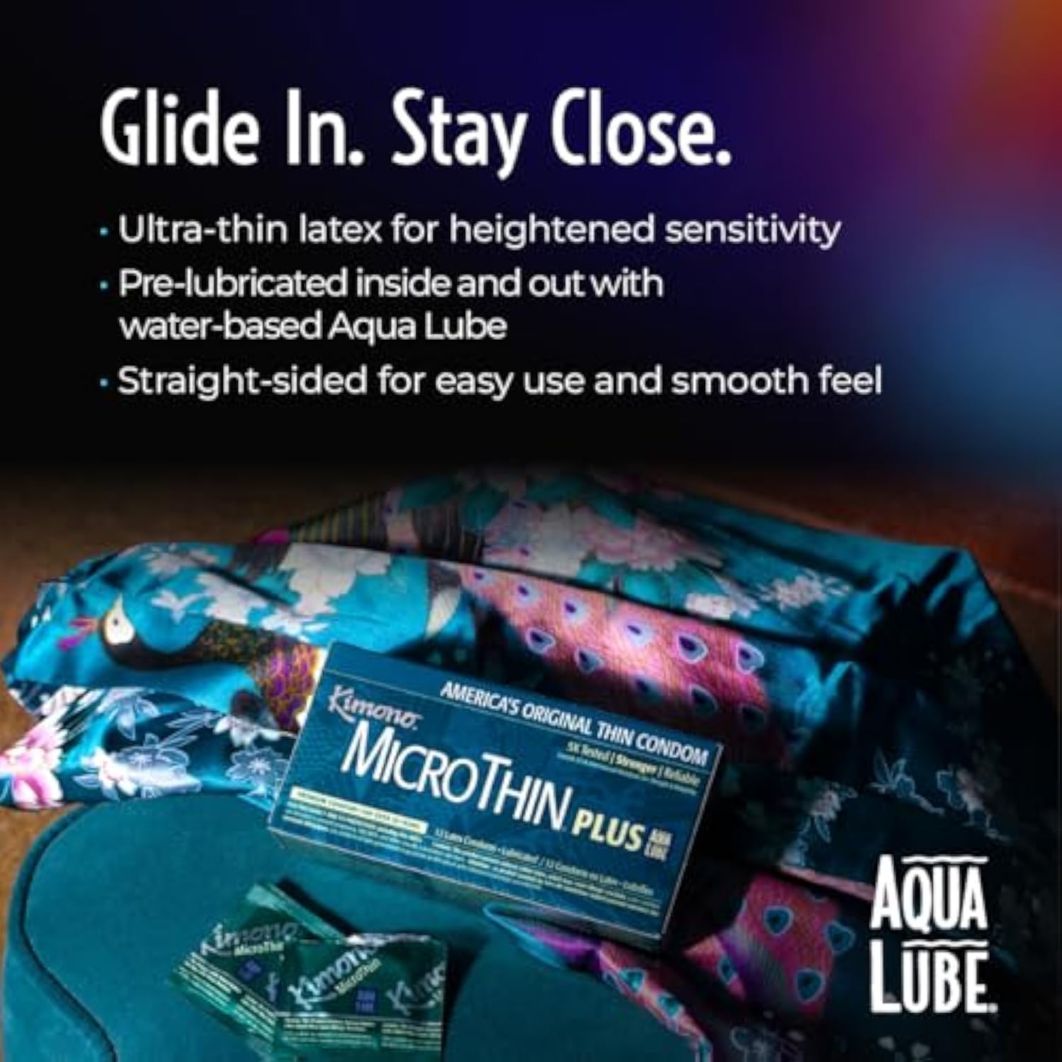 | Sensitivity: Experience unparalleled sensitivity and smoothness with our Kimono MicroThin Plus Aqua Lube condoms, designed for a straight-sided shape that provides barely there protection, enhancing intimacy with every moment. Made in Japan. | | Enhanced Moisture: Our original MicroThin condom is now enhanced with silky smooth AquaLube, offering extra moisture for comfort, ensuring both partners enjoy a closer and more pleasurable experience. Only Kimono has earned the name MicroThin. | | Japanese-engineered: Kimono ultra-thin sensational condoms offer unmatched strength and reliability. With science and engineering at its core, they're tested 5X for durability, surpassing US standards, ensuring peace of mind with every use. | | Premium Vegan Material: Crafted from premium latex without the unpleasant latex odor. Free from parabens, glycerin, spermicide, and nitrosamines. Certified to MDSAP and ISO International Quality Standards and FDA and Health Canada Requirements. | | Kimono By Mayer Labs: With over 35 years of expert research, premium ingredients, and a focus on enhancing every intimate moment with science-backed innovations. | |