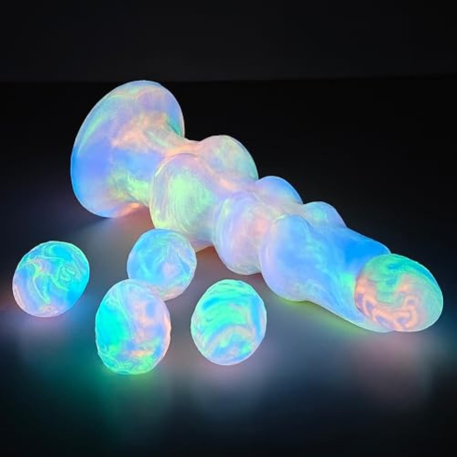 Knotted Monster Dildo Ovipositor Dildo Hollow Tunnel With 5 Eggs, Adult Sex Toy For Women, Couples, 6.89'' Luminous Wolf Knotted Dildo Women Sex Toys - Large Luminous Egg
