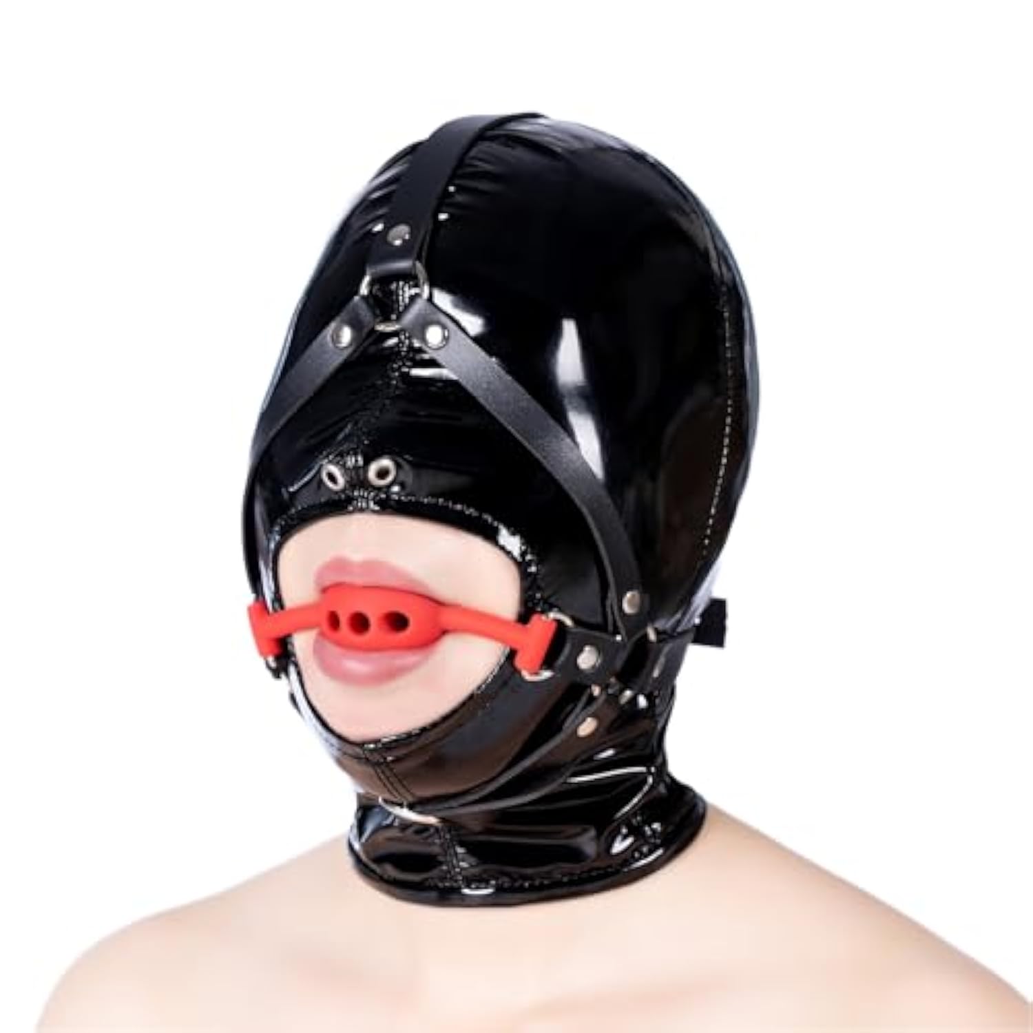 Leather Bdsm Headgear With Silicone Ball Gag, Strip Mouth Restraint Hood Slave Mouth Gag, Bondage Gear For Couples, Erotic Slave Play (Red Ball)
