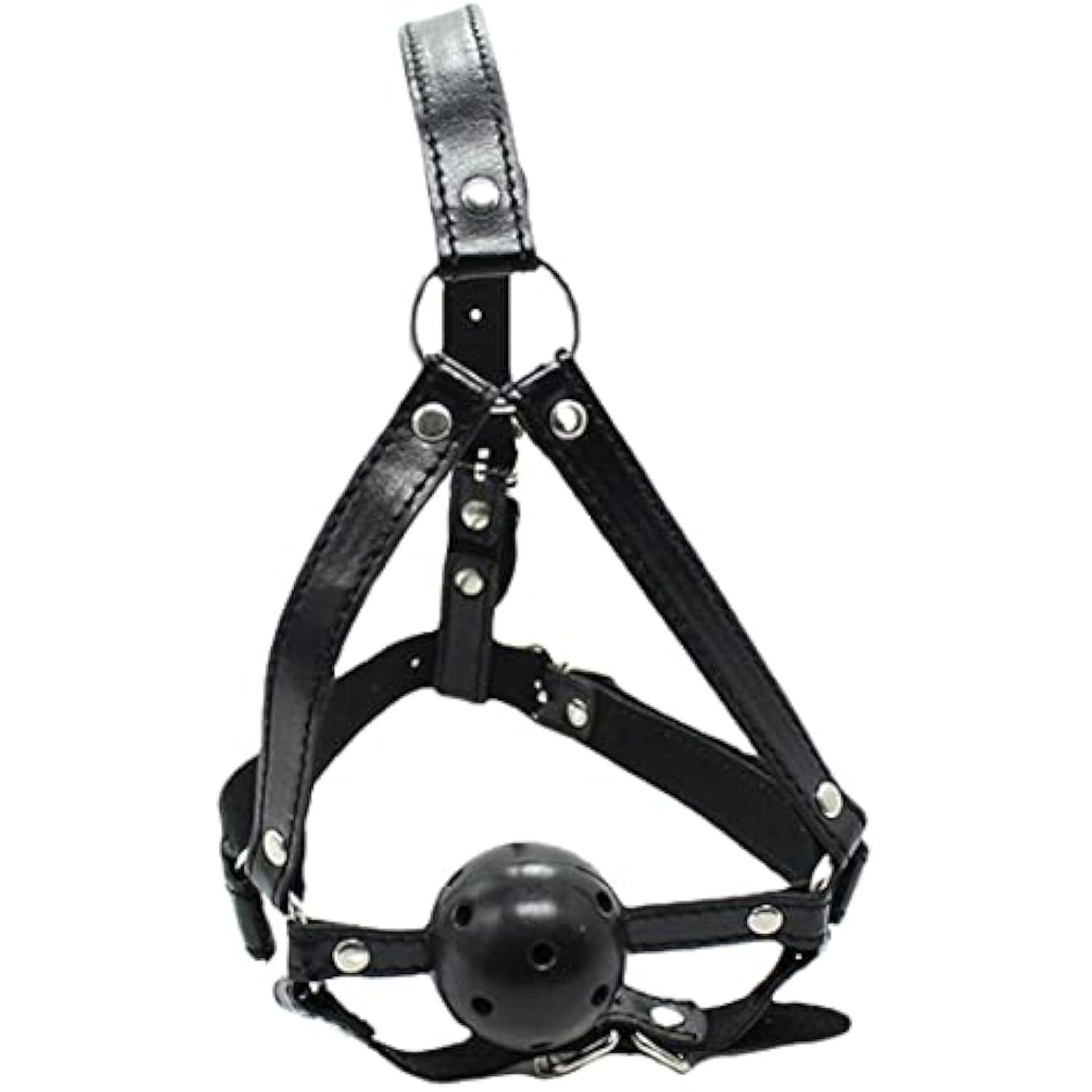 Leather Bondage With 1.77 Inch Mouth Gag Adjustable Head Harness Bdsm Fetish Slave Restraints For Men Women Couple(Black)