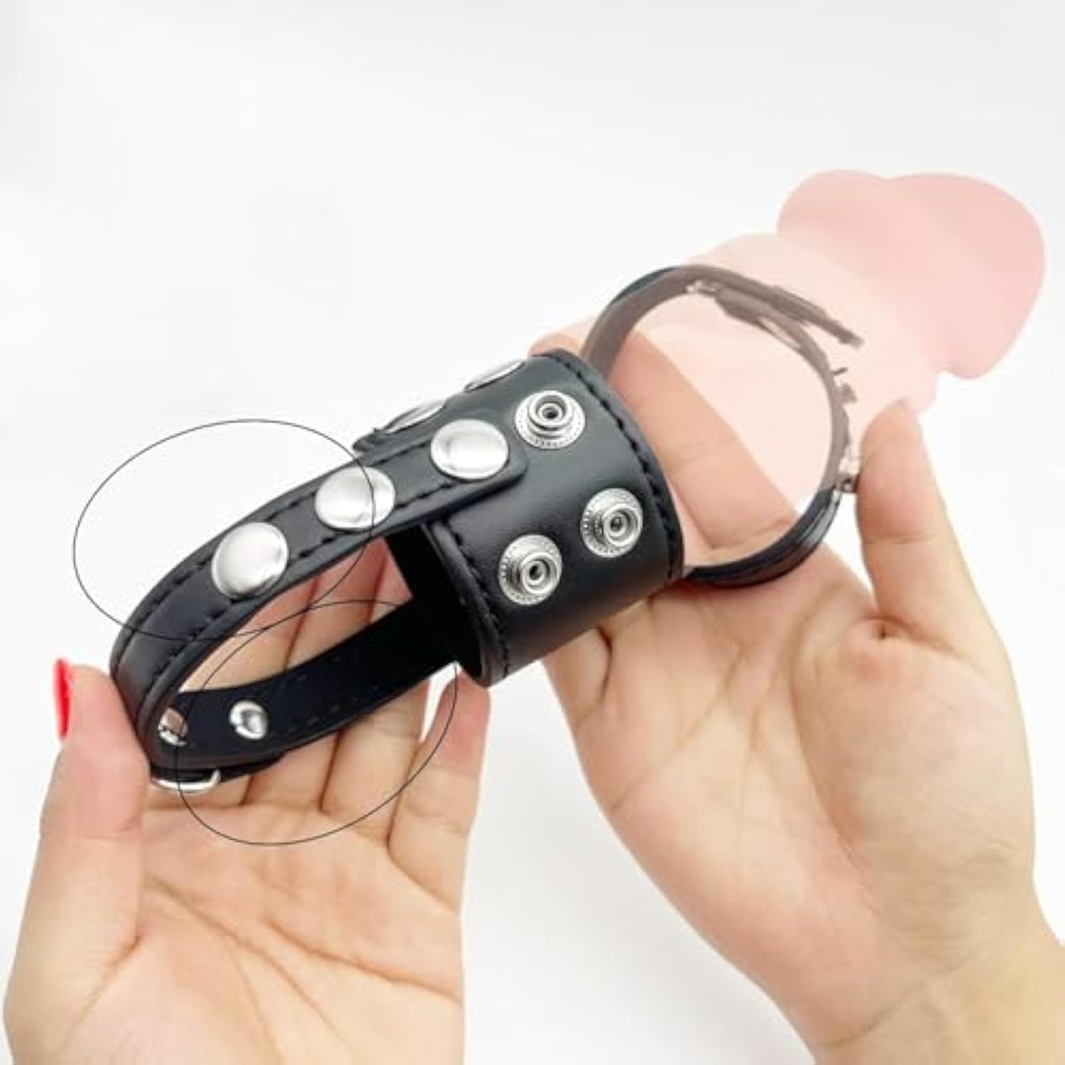 - Adjustable Leather Buckle --- There Are Many Buttons On The Chastity Cage