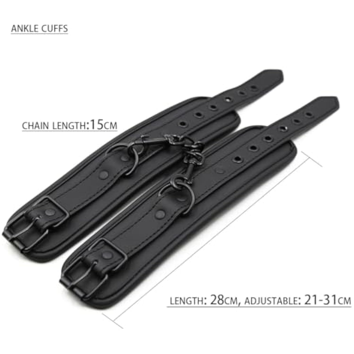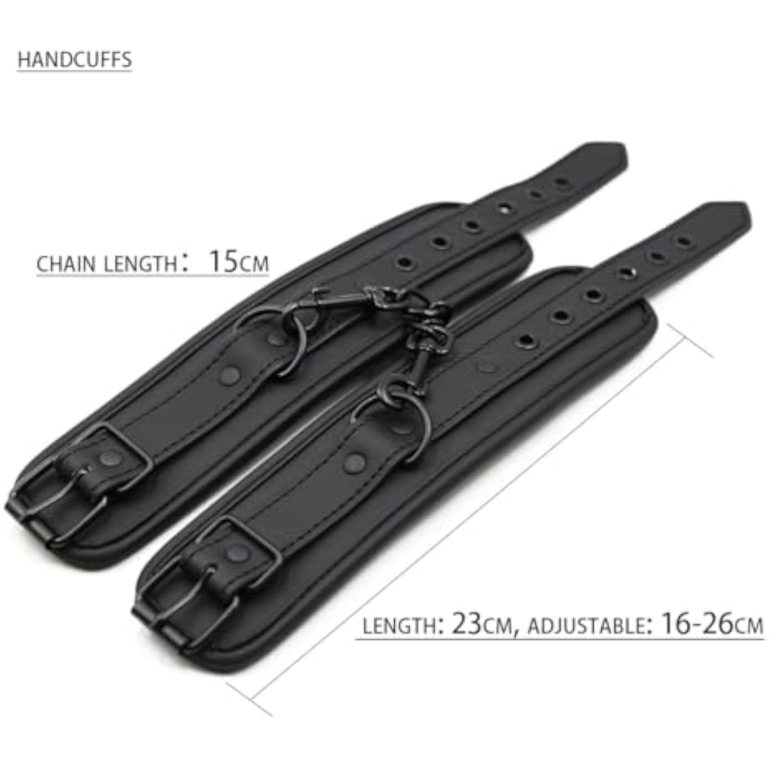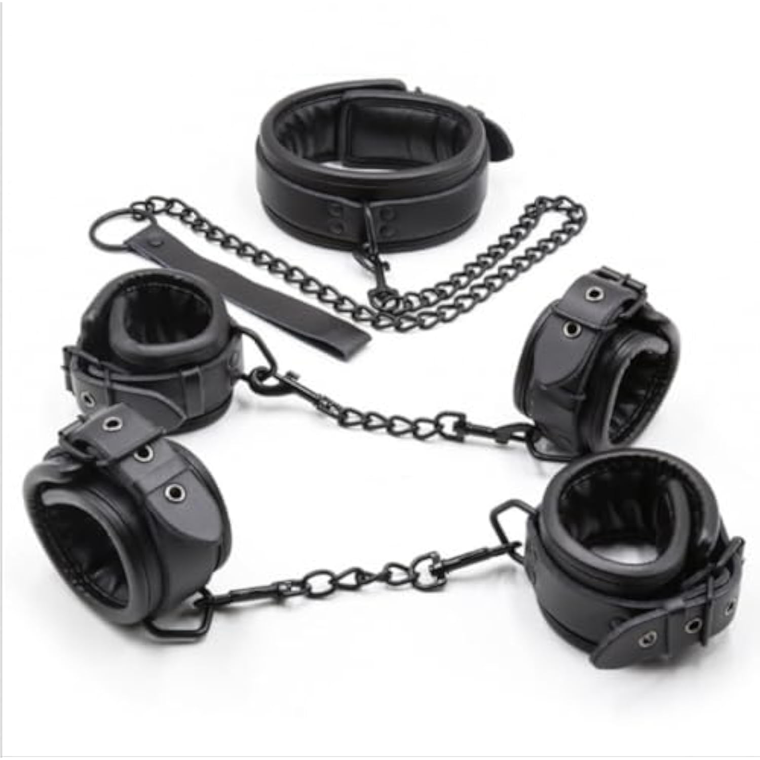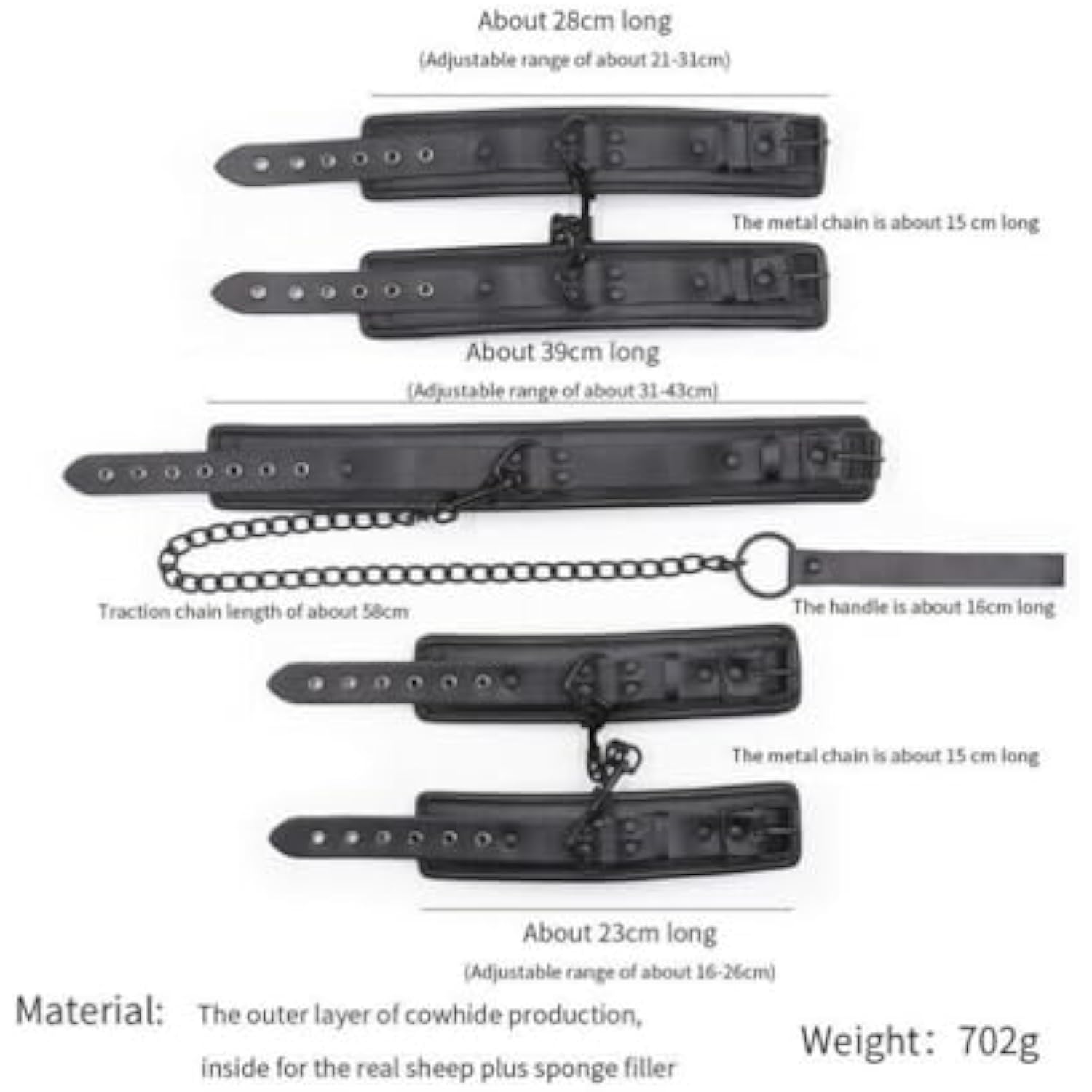 Leather Handcuffs Ankle Cuffs Neck Choker With Chain Bondage Restraint Bdsm Cosplay?3Pcs?