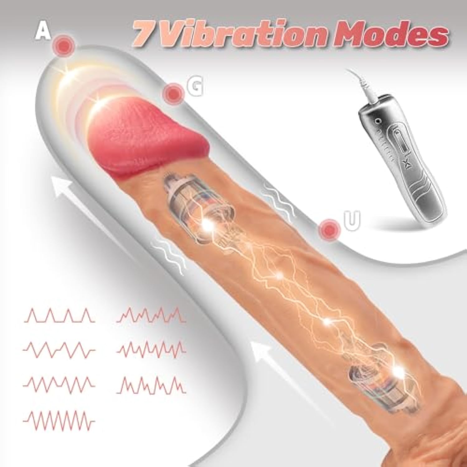 Lh- 9.5 Inch Lifelike Vibrating Vibrator Realistic Thrusting Silicone Suction Cup Dildo - with 7 Vibrating for Clitoral G spot Stimulation for Hands-Free Play Sex Toys for Women,Female, Men & Couples