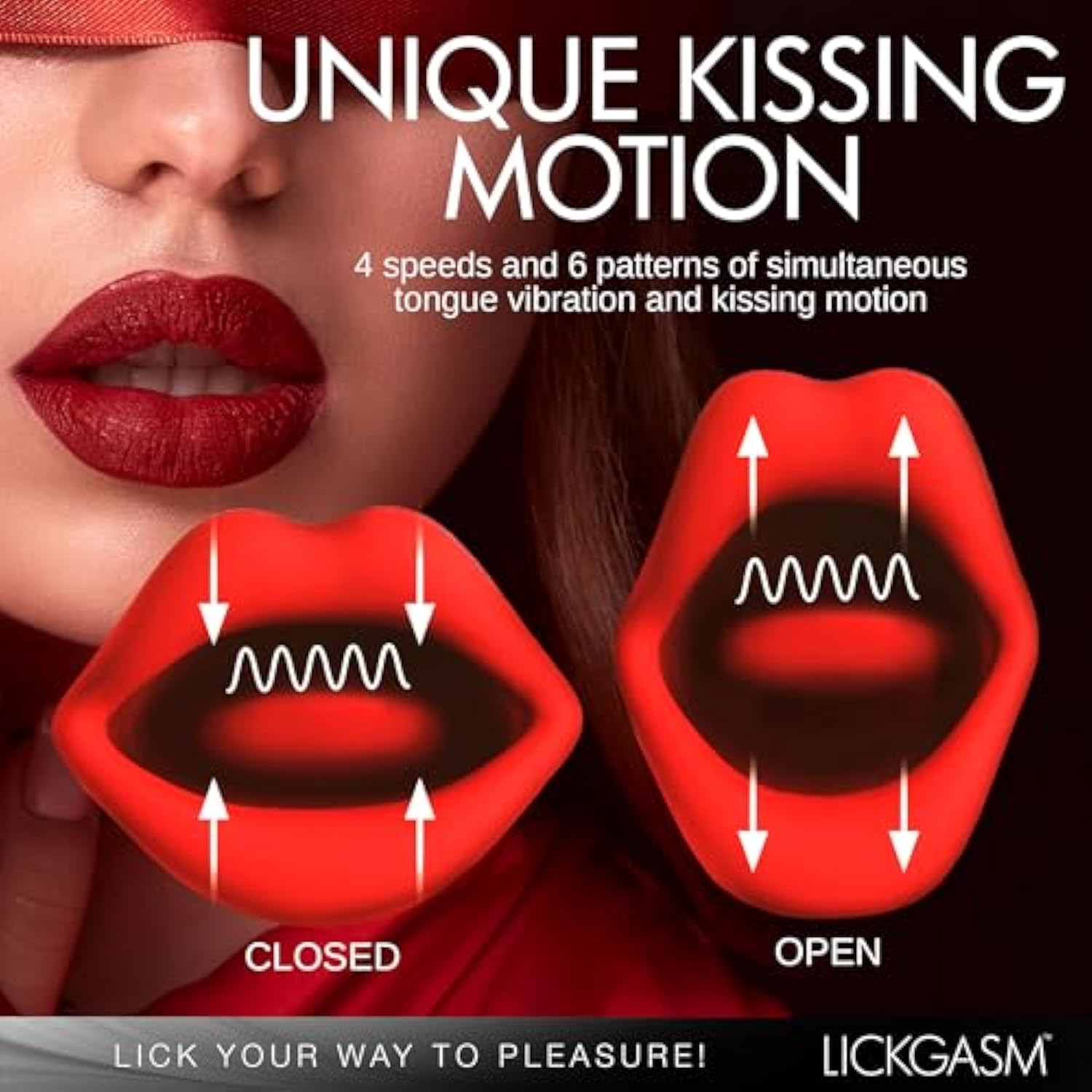 Lickgasm Kiss And Tell Mini Kissing And Vibrating Clitoral Stimulator For Women & Couples. Powerful Vibration With Kissing Tongue. Made Of Premium Silicone. Waterproof And Rechargeable. 1 Piece, Red.