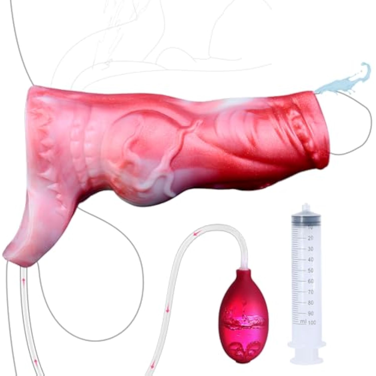Lifelike Cock Sleeve Penis Extension Blood Red Ejaculating Delay Squirting Light Weight Penis Sleeve Adult Sex Toys For Men Couples (N-Bf5210, L)