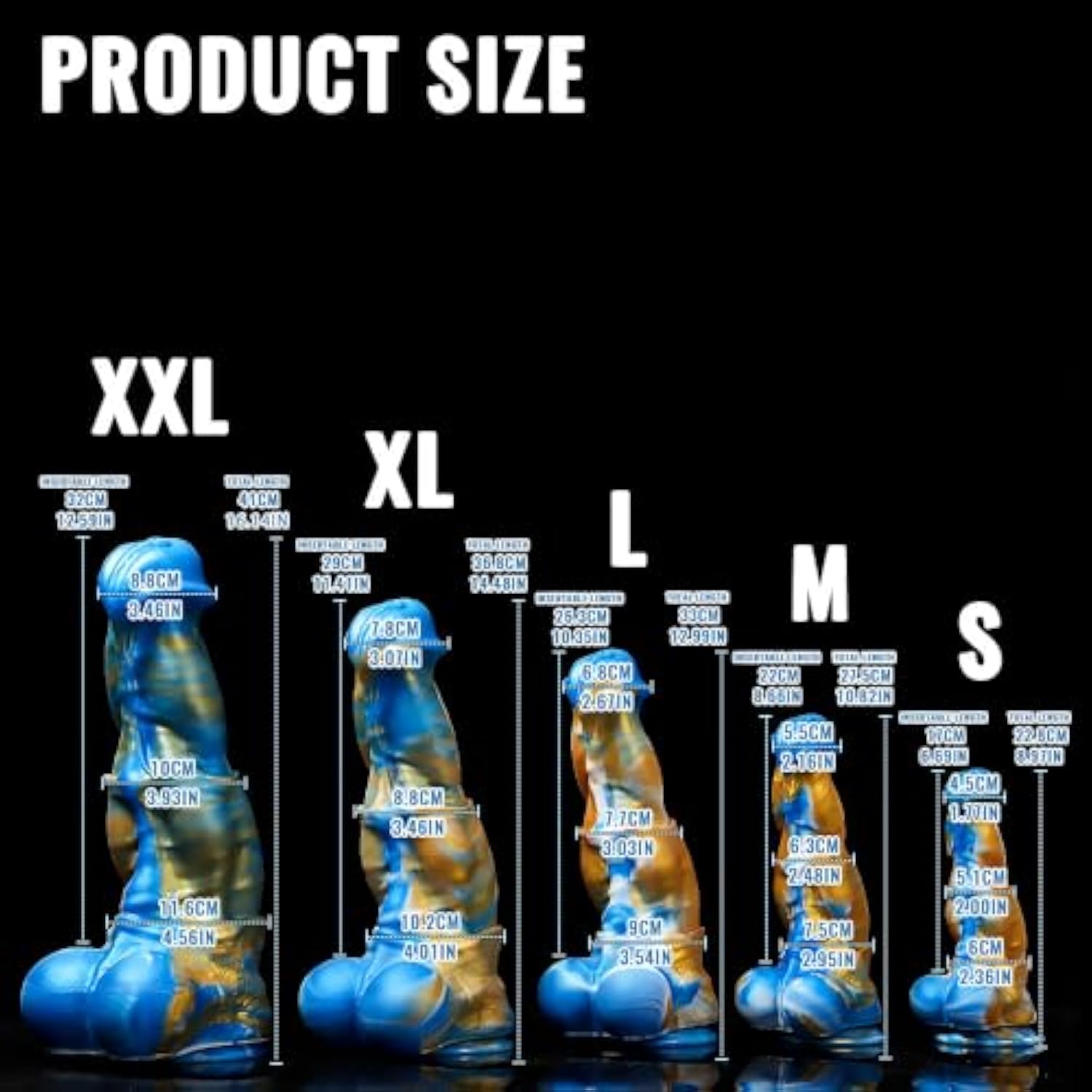 =- Horse Dildo Powerful Muscle Design?Experience Unparalleled Pleasure With Our Horse Dildo, Designed With Powerful Muscle Details. This Thick, Lifelike Dildo Features A Robust Head And Intricate veining, Enhanced By A Striking Blend Of Blue, Gold, And Whi