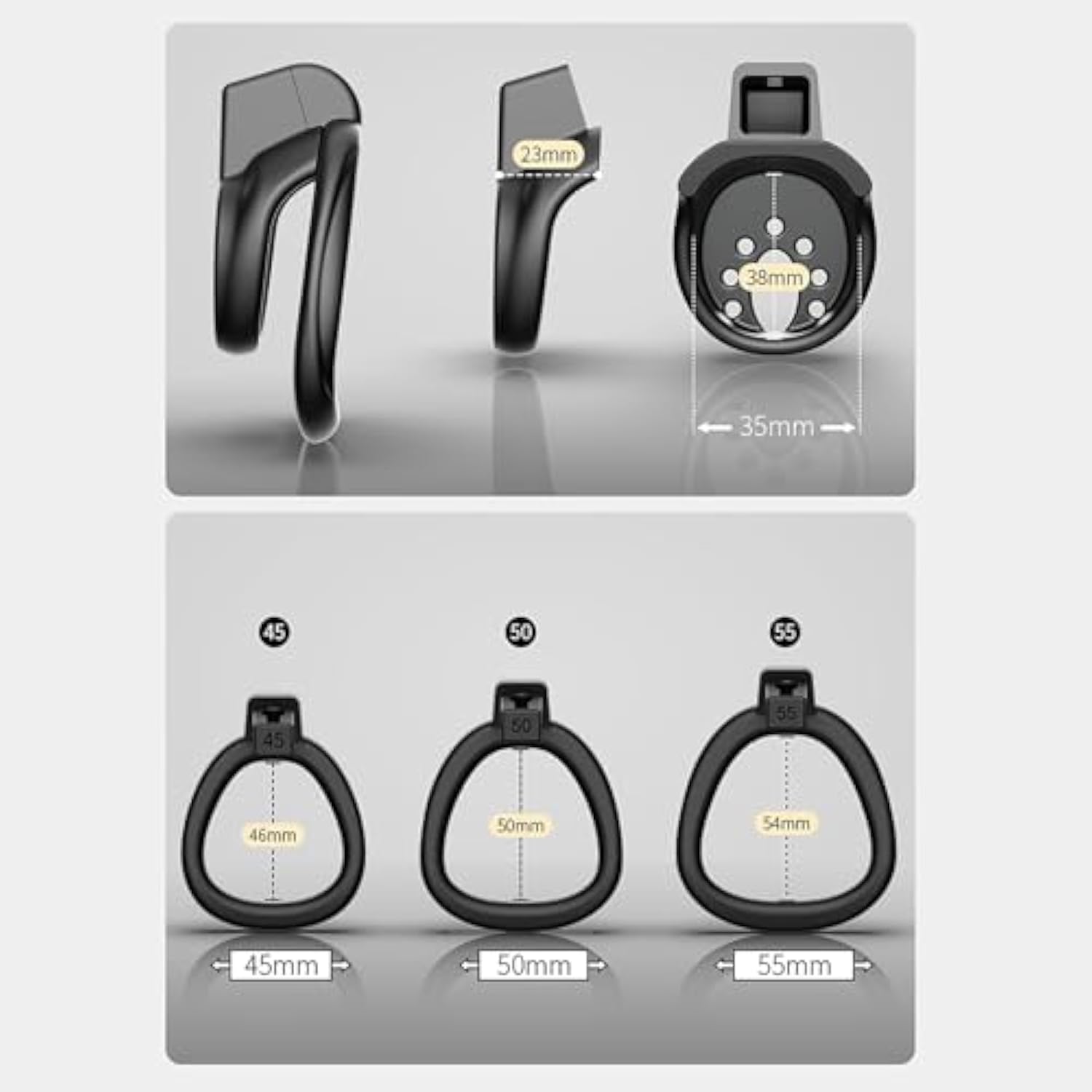 | Kg Cage Material Surface: Smooth, Lightweight, No Sharp Cast Edges | | Chastity Devices Package Contents: 1 Cage With 3 Rings | | Each Chastity Cage Comes With 3 Different Sizes Of Penis Rings, 45Mm, 50Mm, 55Mm, Making It Easier To Find A More Fitting Size | | The Locking Mechanism Of The Chastity Devices Does Not Require An Additional Padlock Like Other Models, But Instead Has A Plug Lock On The Top. This Means No Annoying Deadbolts | | The Material And Controllability Are Very Good, And It Is Also Recommended For Long-Term Use | |