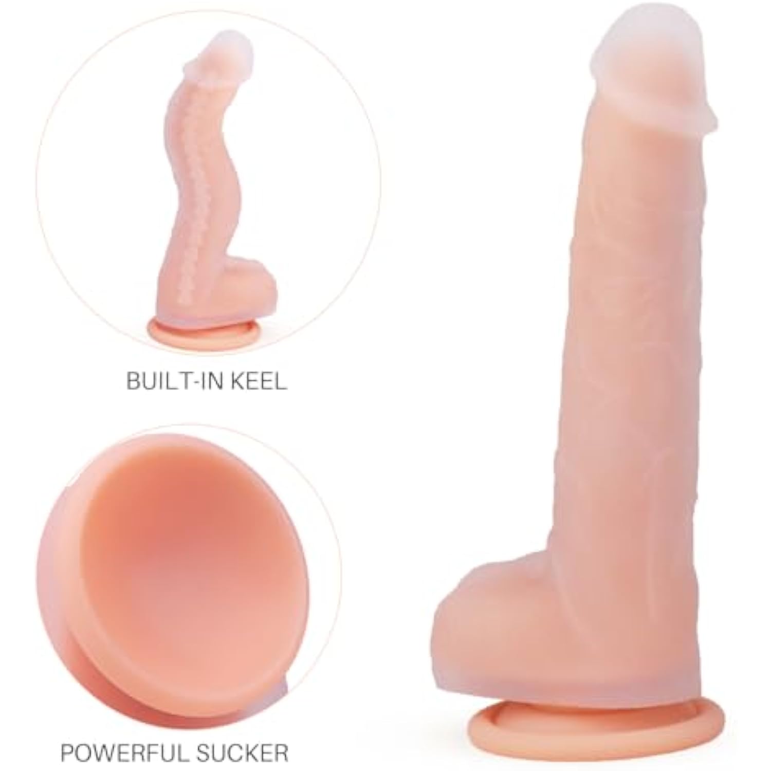 Liquid Silicone Simulated Penis - Realistic Styling, Double Layer Process, External Softness And Internal Hardness, Built In Keel With Adjustable Shape, Strong Suction Cup (Flesh)