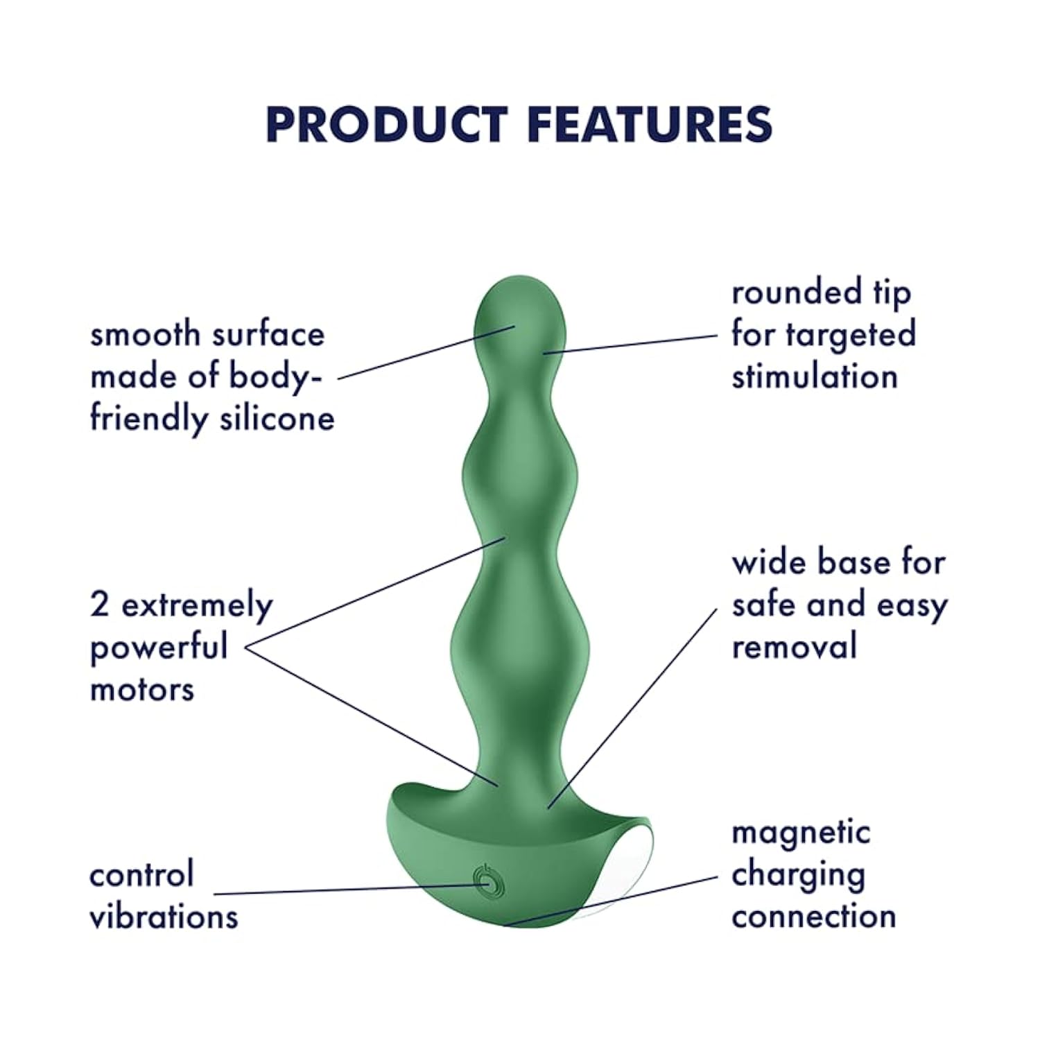 Lolli-Plug 2 Anal Vibrator - Vibrating Anal Plug, Round Shaped Beads With Increasing Diameter And Wide Base - Suitable For Beginners, Waterproof, Rechargeable (Green)