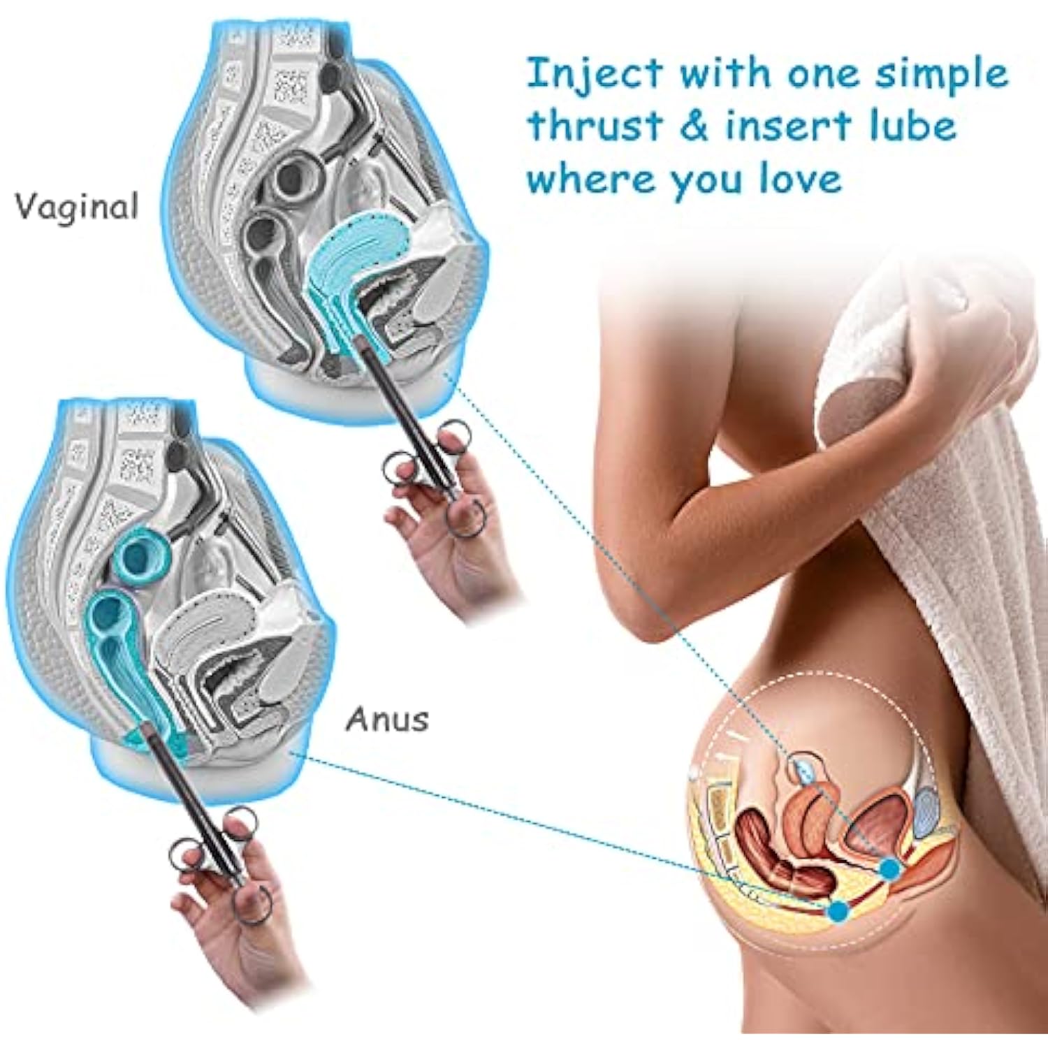 Lube Applicator Syringes, Lubricant Tube Shooter With Smooth Rounded Cap For Men, Women & Couples, Reusable, Easy Use & Clean [10Ml Scales][Gray & Gray]