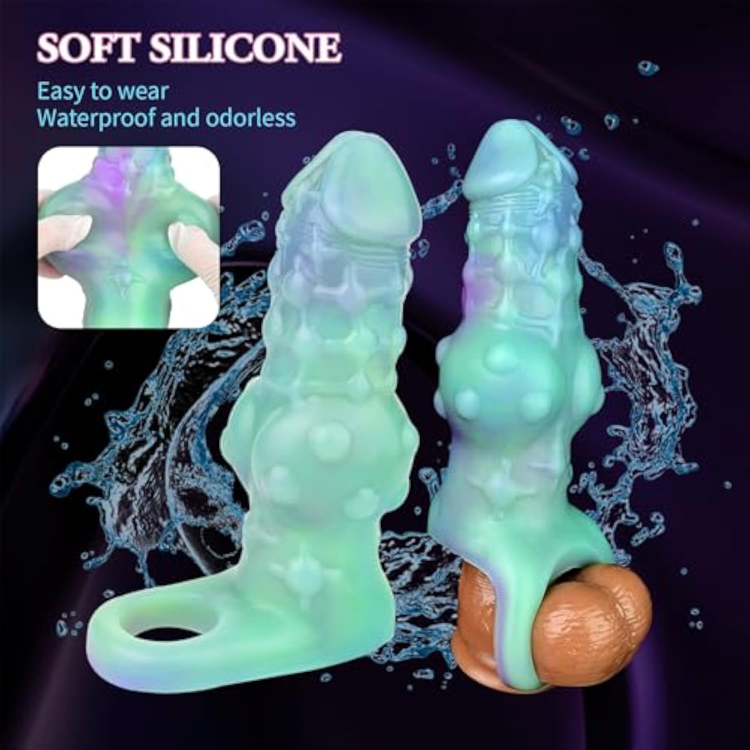 Luminous Dog Penis Sleeve For Men, 7Inch Fantasy Silicone Monster Cock Enlargement Dildo Grith Extender With Penis Ring Ejaculation Delay For Couples