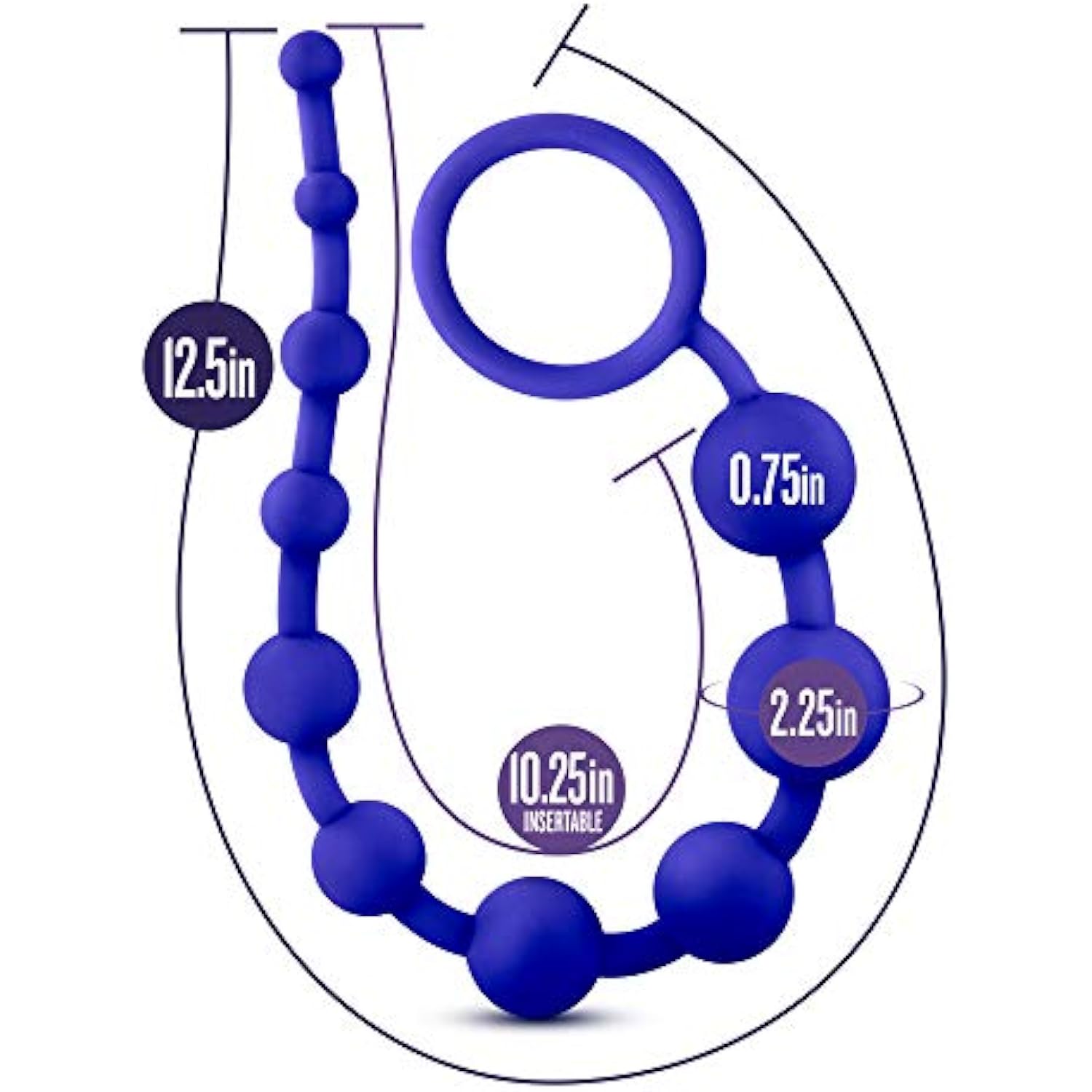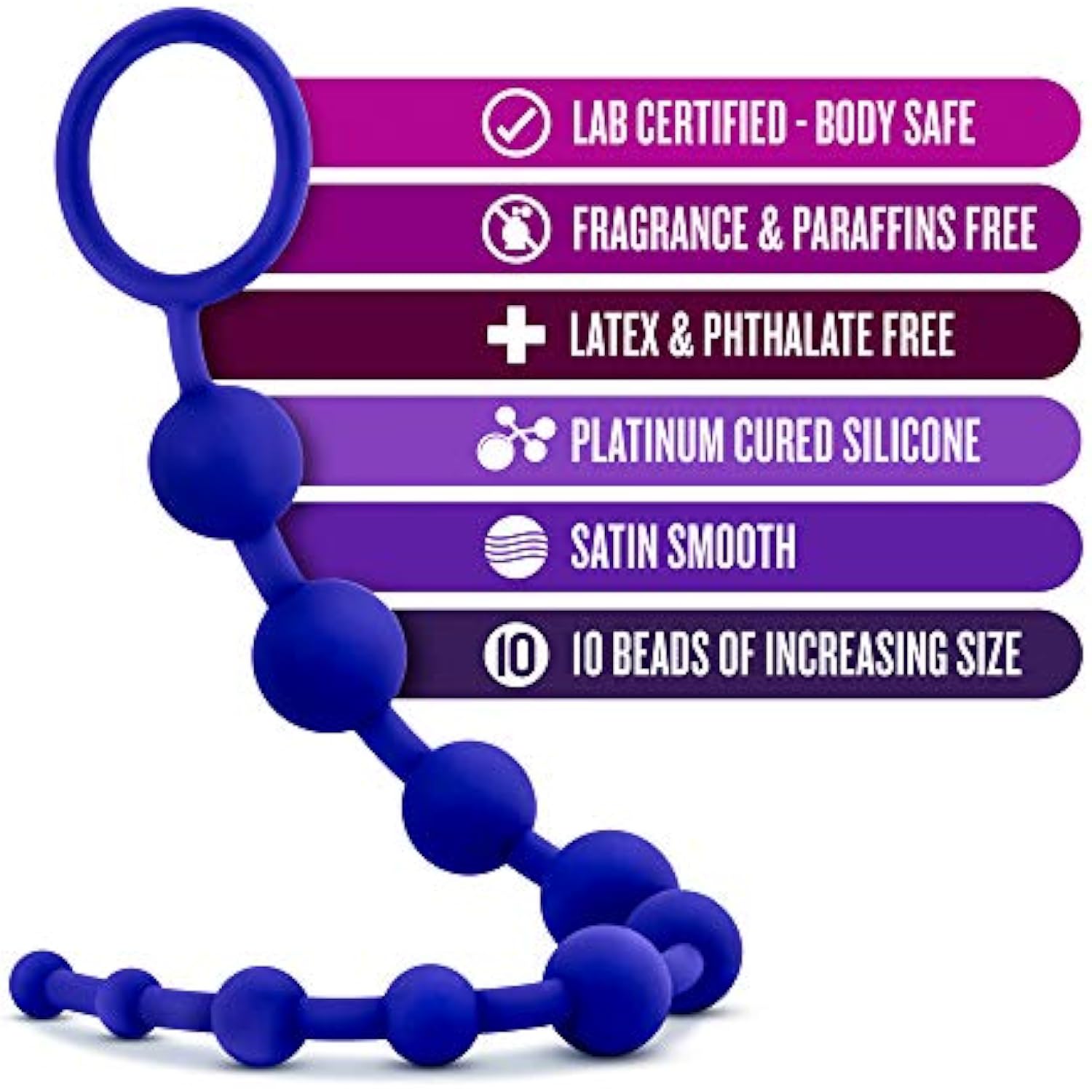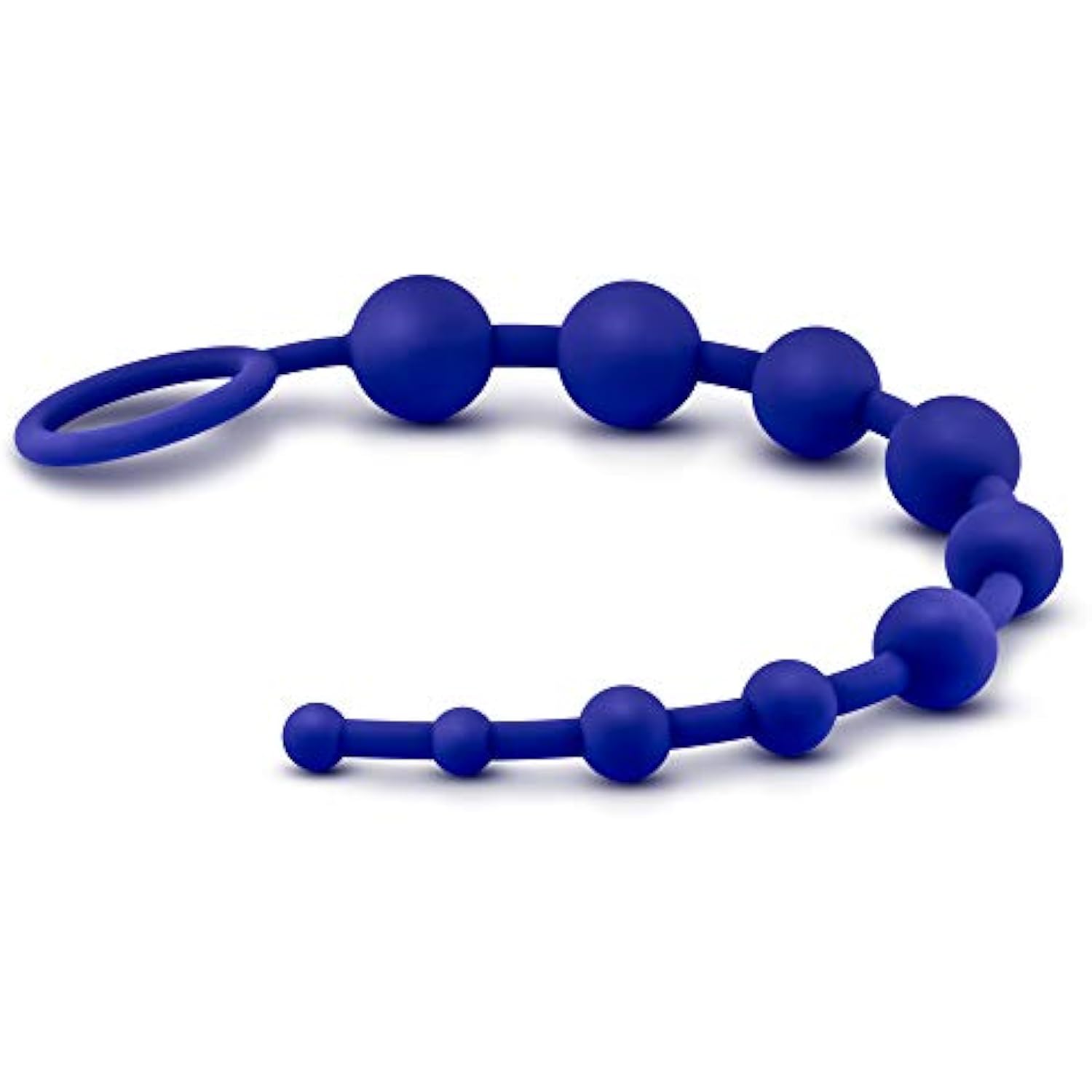 Luxe Silicone 10 Anal Beads - Silky Smooth Ultrasilk - Puria Platinum Silicone - 12.5" Long Beginner Anal Plug With Sturdy Handle - Anal Training Sex Toy For Men Women Couples - Indigo