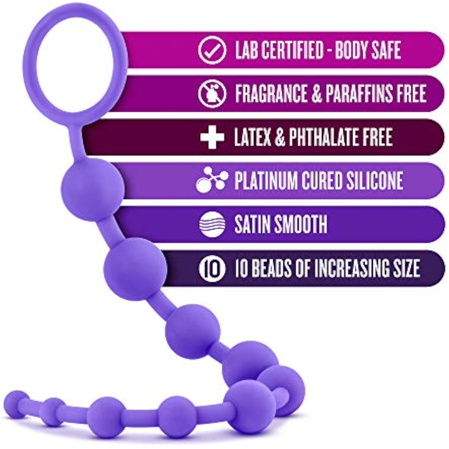 Luxe Silicone 10 Anal Beads - Silky Smooth Ultrasilk - Puria Platinum Silicone - 12.5" Long Beginner Anal Plug With Sturdy Handle - Anal Training Sex Toy For Men Women Couples - Purple