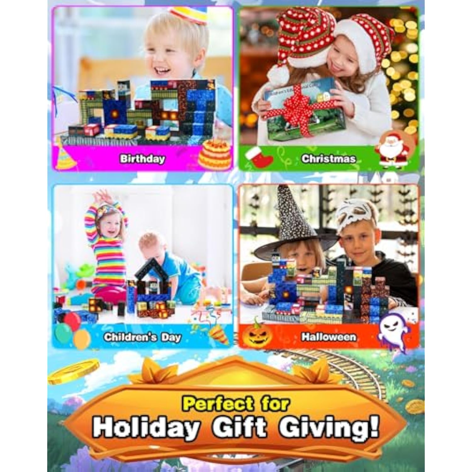 | ?Elements Abound, Unlimited Creativity?The 100Pcs Magnetic Blocks Include A Variety Of Elements Such As Lava, Minerals, Tracks, Trains, And Treasure Chests. This Goes Beyond Traditional Building Structures, Adding The Excitement Of Adventure And Treasure Hunting. Moreover, Magnetic Blocks Are Compatible With Other Popular Brands On The Market, Allowing You To Expand Your Collection By Adding More Cubes. Children Can Build Their Own Underground Railway Worlds, Simulating Mine Exploration And The Discovery Of Hidden Treasures | | ?Safe And Healthy Play?The Magnetic Building Blocks Are Made From Safe, Non-Toxic Materials, Ensuring Kids Joyful And Worry-Free Play. The Magnetic Toys Have Smooth Rounded Edges And Are The Right Size To Not Hurt Your Baby'S Little Hands.Uv Printing Technology Ensures Vibrant, Long-Lasting Patterns That Won'T Fade, Enhancing Both Durability And Beauty. For Safety, Parental Supervision Is Recommended For Children Under 3 To Prevent Accidents Like Swallowing | | ?Learning Through Play, Holistic Development?This Set Of Magnetic Building Blocks Is More Than Just A Toy; It Serves As A "Mobile Classroom" For Children. By Engaging In Hands-On Construction And Creative Thinking, Kids Can Enhance Their Hands-On Skills, Imagination And Stem Skills. The Included Drawstring Storage Bag Makes Storage A Breeze, So Kids Can Enjoy Building Anytime, Anywhere, Whether At Home, At School Or While Traveling. Ideal For Early Childhood Education,Especially For Children Who Enjoy House Building And For Children With Autism Who Need Special Care | | ?Strong Magnetic Design, Perfect Experience?The 8 Corners Of The Magnetic Building Toys Come With Super-Strong Internal Magnets To Ensure That The Connection Between Each Magnetic Cube Is Solid And Reliable, So That It Is Not Easy To Fall Apart Even If The Building Is Complicated. This Design Can Stimulate Kids Creativity And Spatial Thinking Ability, Bring Perfect Play Experience, While Reducing The Frustration Caused By Unstable Structure. The Magnetic Toys Support Creating And Counting On The Refrigerator Or Chalkboard, Enhancing Interactivity And Replacing Electronic Screen Time | | ?Perfect Gift To Accompany Growing Up? Magnetic Building Blocks Are Designed For Children Ages 3-12 Years Old, Which Can Meet The Basic Building Needs Of The Early Childhood Stage, But Also Provide More Challenging Building Tasks For Older Children. Whether It'S A Birthday, Christmas Or Holiday Party, Magnetic Building Blocks Are The Perfect Gift Choice. It Not Only Brings Endless Joy, But Also Helps Children Learn And Grow Through Play. Choosing Is Choosing A Toy That Is Both Fun And Educational | | ?Don'T Miss The Learning Toy Gift?This Magnetic Building Toys For Kids And Toddlers Will Not Only Bring Endless Fun, But Also Help Children Develop Various Skills. Suitable For Boys And Girls Aged 3-6, 6-8, 8-12. Suitable For Group Activities And Classroom Use, Including Preschool And Kindergarten. The Magnetic Tiles Comes With A Beautifully Packaged Gift Box, Which Is An Ideal Boy Toy And Girl Toy, Perfect As A Birthday Present, Children'S Day Gift, Christmas Gift,Etc | |