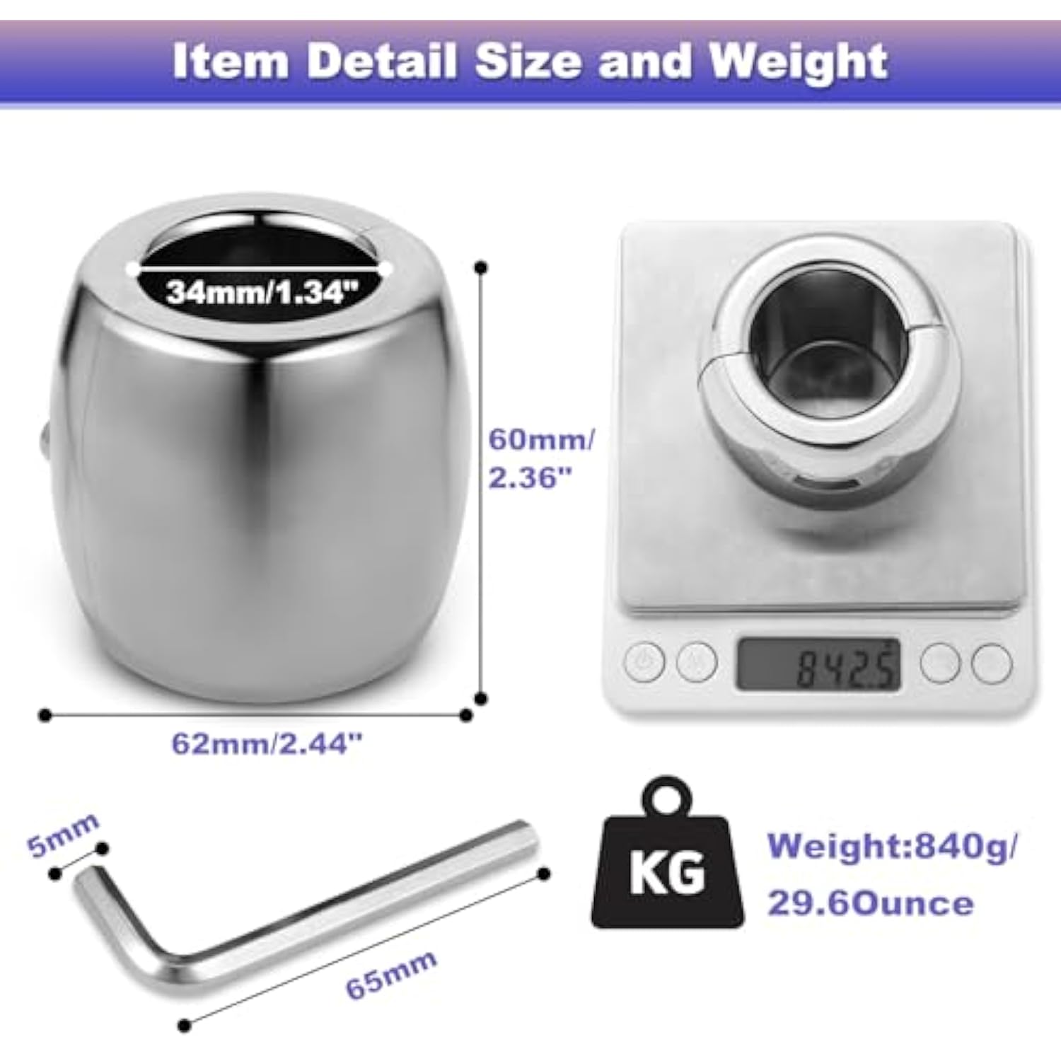 Male Ball Stretcher Heavy Duty 304 Stainless Steel Ball Testicle Scrotum Pendant Ball (Inner Dia 34Mm,Tall 60Mm,29.6 Ounce)