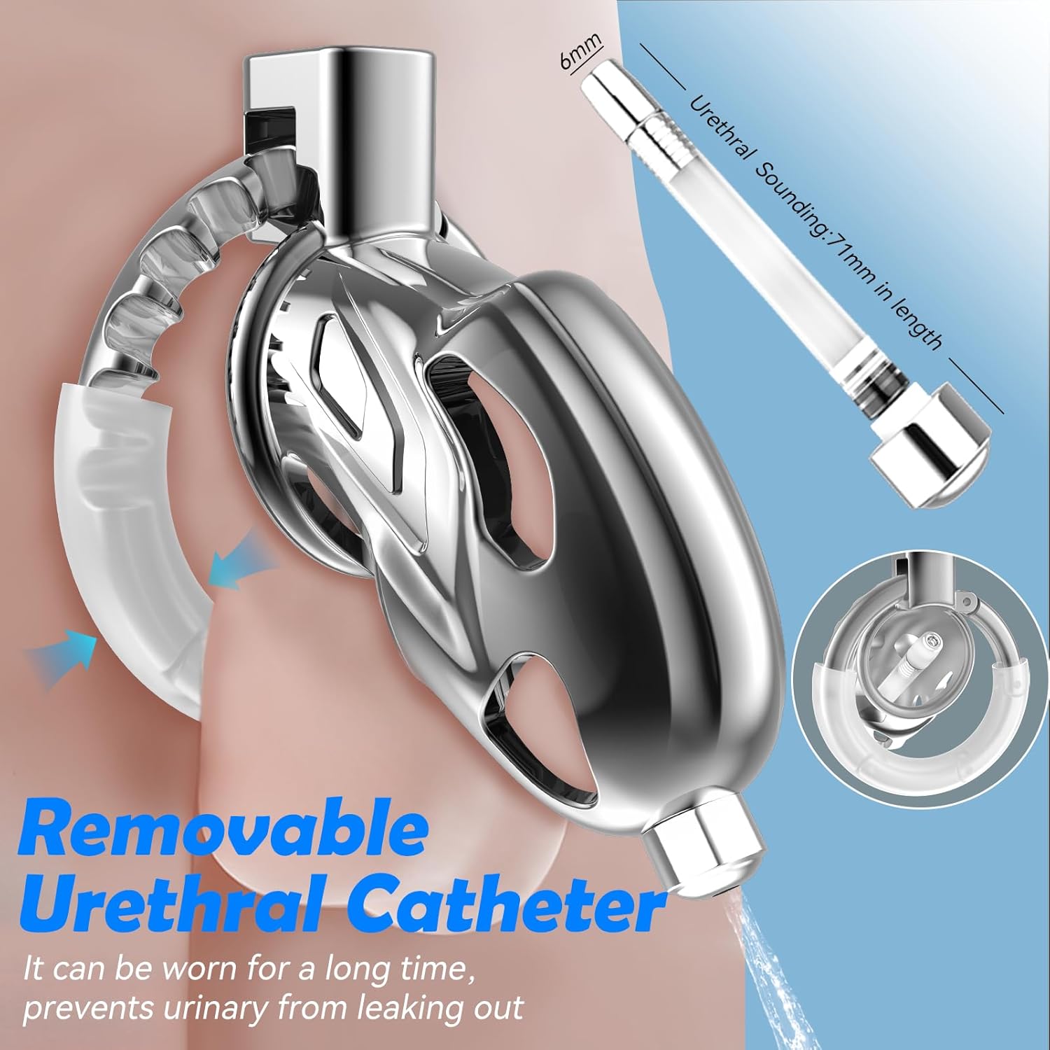 Comfortable Urethral Catheter Design: Designed with a built-in urination port, this chastity cage allows for hassle-free use and enhanced stimulation. The removable urethral catheter ensures practicality for daily wear while maintaining hygiene and comfort.