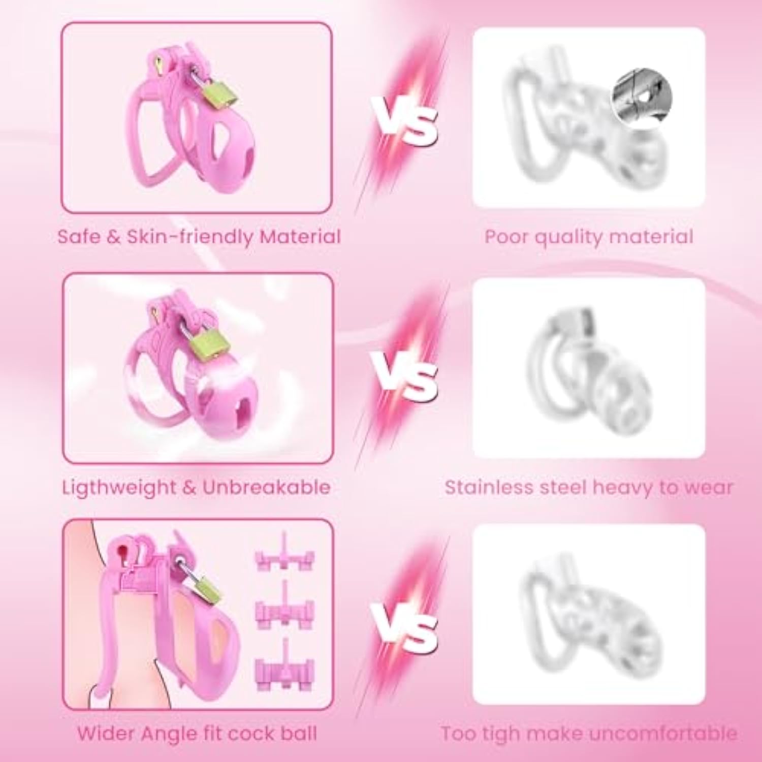 - [Chastity Cage With Multiple Lock Combinations] Do You Want Your Partner To Have A Deeper Sense Of Trust Compared With Other Cages On The Market, Our Cage Adopts Multiple Locking Methods: Simple And Clean Hidden Lock, Wild Metal Lock And 5 Disposable Lo