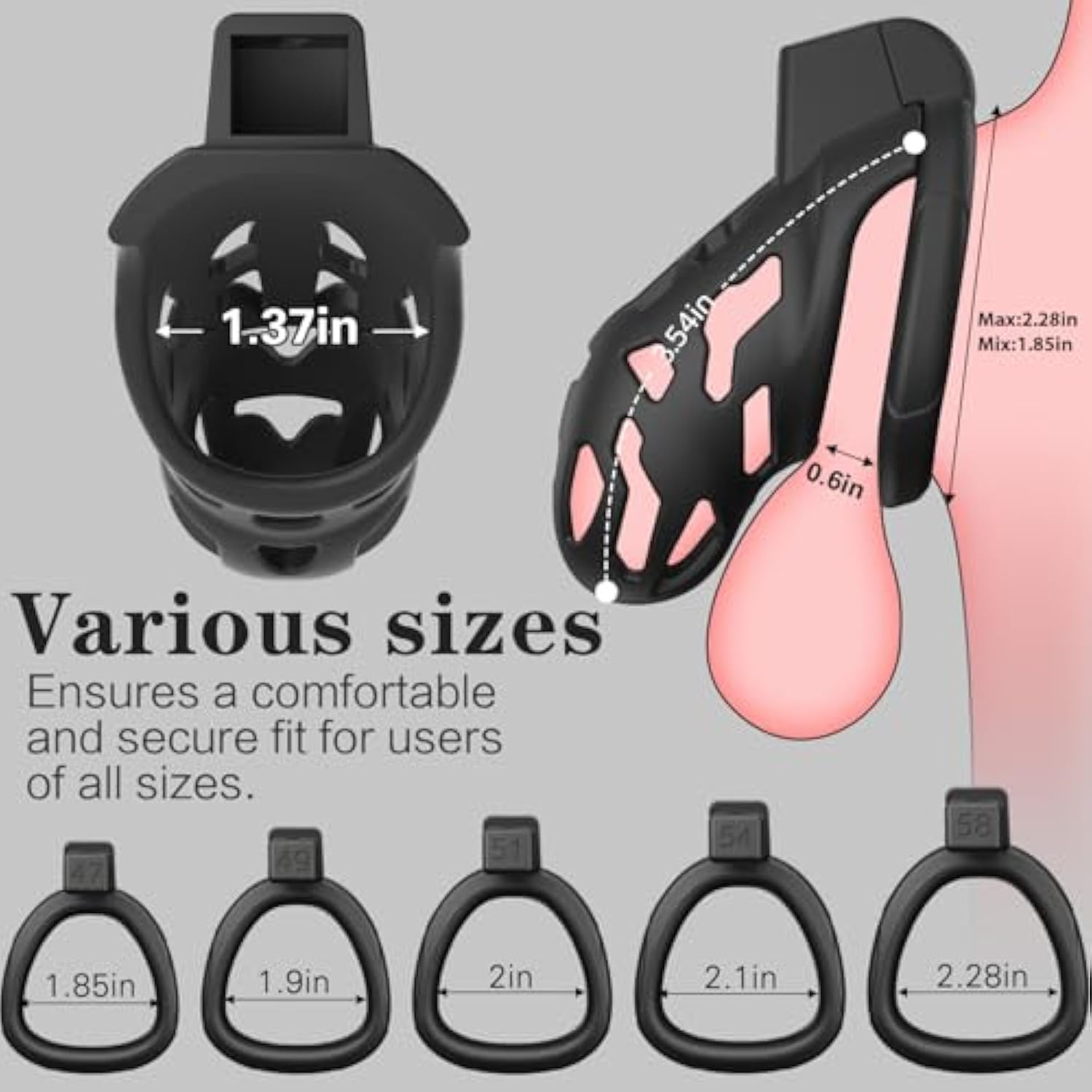 Male Chastity Cage, Large Chastity Devices With 5 Sizes Rings And Invisible Lock For Man Penis Exercise Bondage Gear & Accessories Lightweight Adult Sex Toys