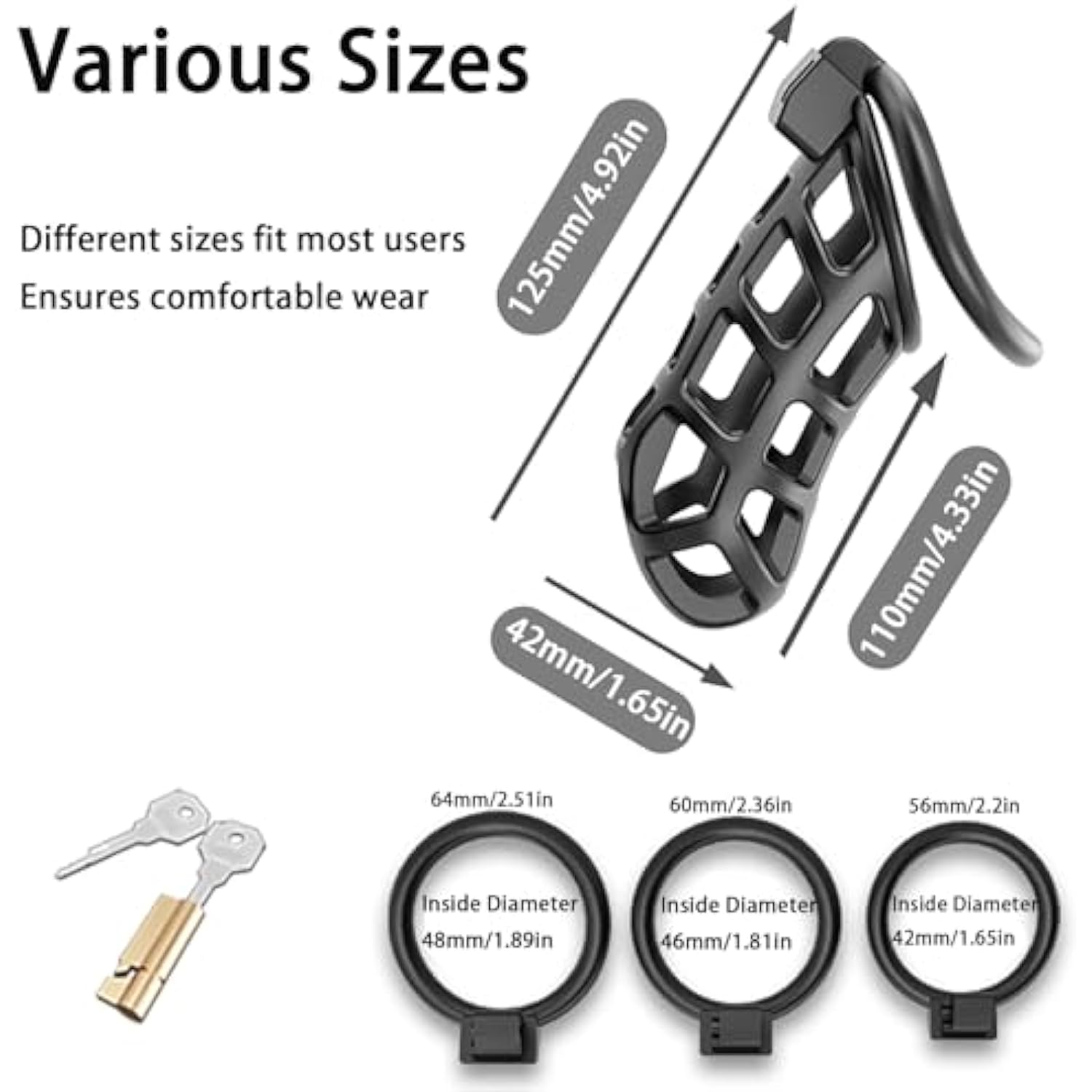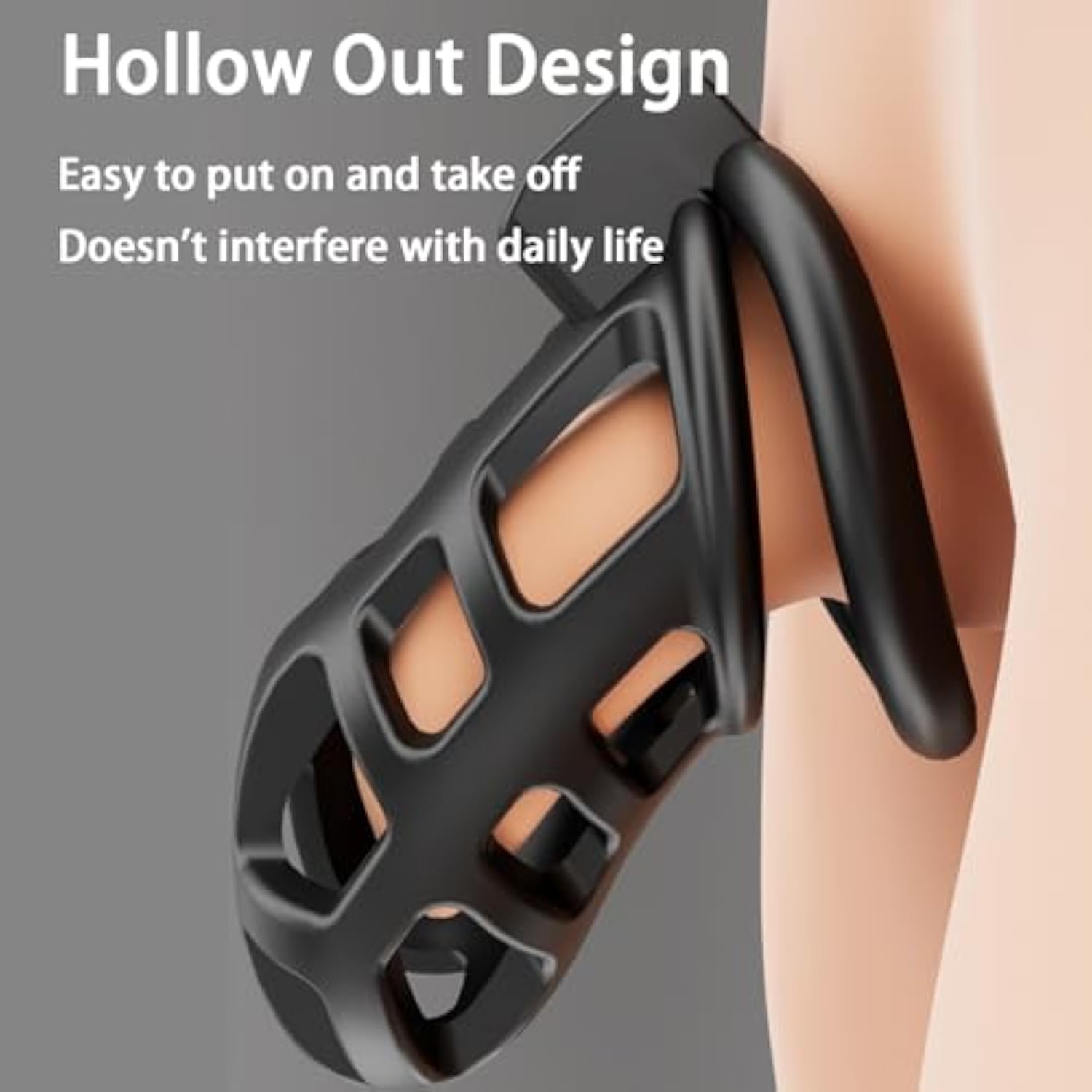 - Ergonomic Hollow Design :This Male Chastity Cage Has Been Designed To Adapt Well To The Natural Shapes Of The Male Intimate Area. The Hollow Design Not Only Looks Cool, But Also Ensures That It Doesn'T Feel Stuffy Or Uncomfortable When Worn.In Addition,