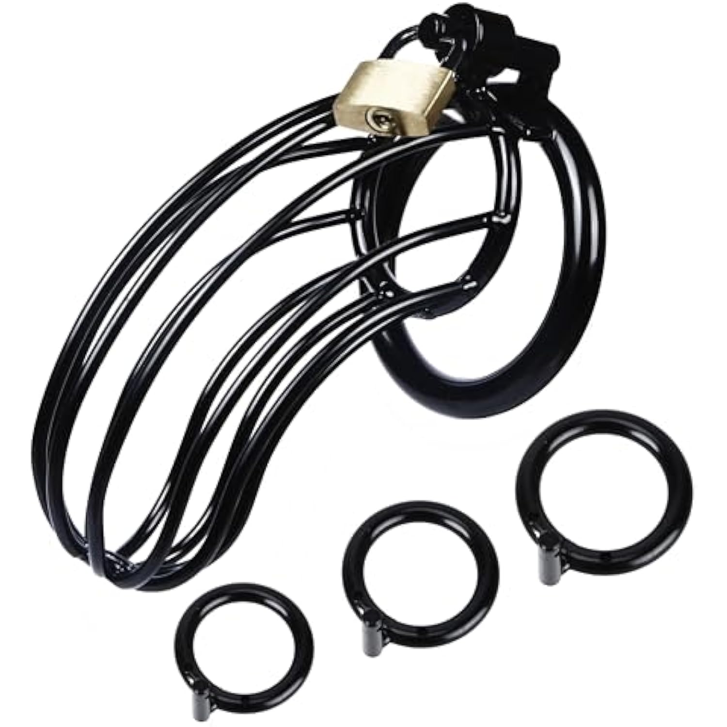 Male Chastity Cage - Large Metal Cock Cage Chastity Device Locked With 3 Sizes Rings And 2 Keys, Adult Sex Toys & Games For Men Penis Exercise And Abstinence, Black