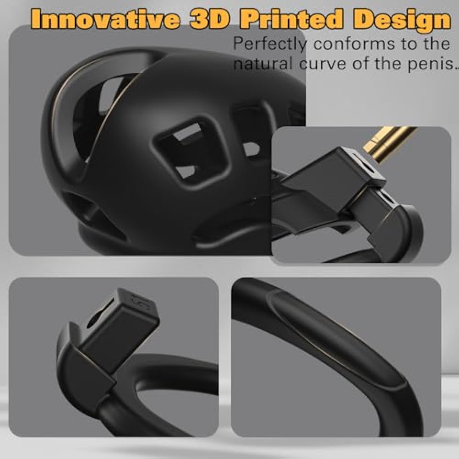 | The Satisfaction Of Filling The Gap: Our Cock Cage Provides The Ultimate Experience Of Fulfilling Your Desires By Restricting The Full Congestion Of Your Sexual Organs. Experience A New Level Of Intense Pleasure When Released. | | Include 5 Cuff Rings: With The Inclusion Of Five Cuff Rings, Our Male Chastity Ensures A Comfortable And Secure Fit For Users Of All Sizes. | | Innovative 3D Printed Design: Our Chastity Belt Features A Cutting-Edge 3D Printed Design That Perfectly Conforms To The Natural Curve Of The Penis. The Surface Is Smooth And Lightweight, Providing Exceptional Comfort During Wear. | | Hollow Out Design: Designed With Breathability In Mind, Our Chasity Cage Incorporates A Hollow Out Design. This Allows For Proper Airflow, Ensuring Your Penis Can Breathe Freely And Remain Comfortable Throughout Extended Wear. Additionally, The Tip Of The Cage Includes A Urination Hole, Enabling Normal Urination Even While Restrained. | | Upgraded Hidden Lock : The Penis Cage Is Equipped With A Sturdy And Durable Hidden Lock Mechanism. Hand Over The Keys To Your Partner And Grant Them The Power To Control Your Erotic Experiences. Explore The Depths Of Pleasure And Submission With This Chastity Cage For Men. | |