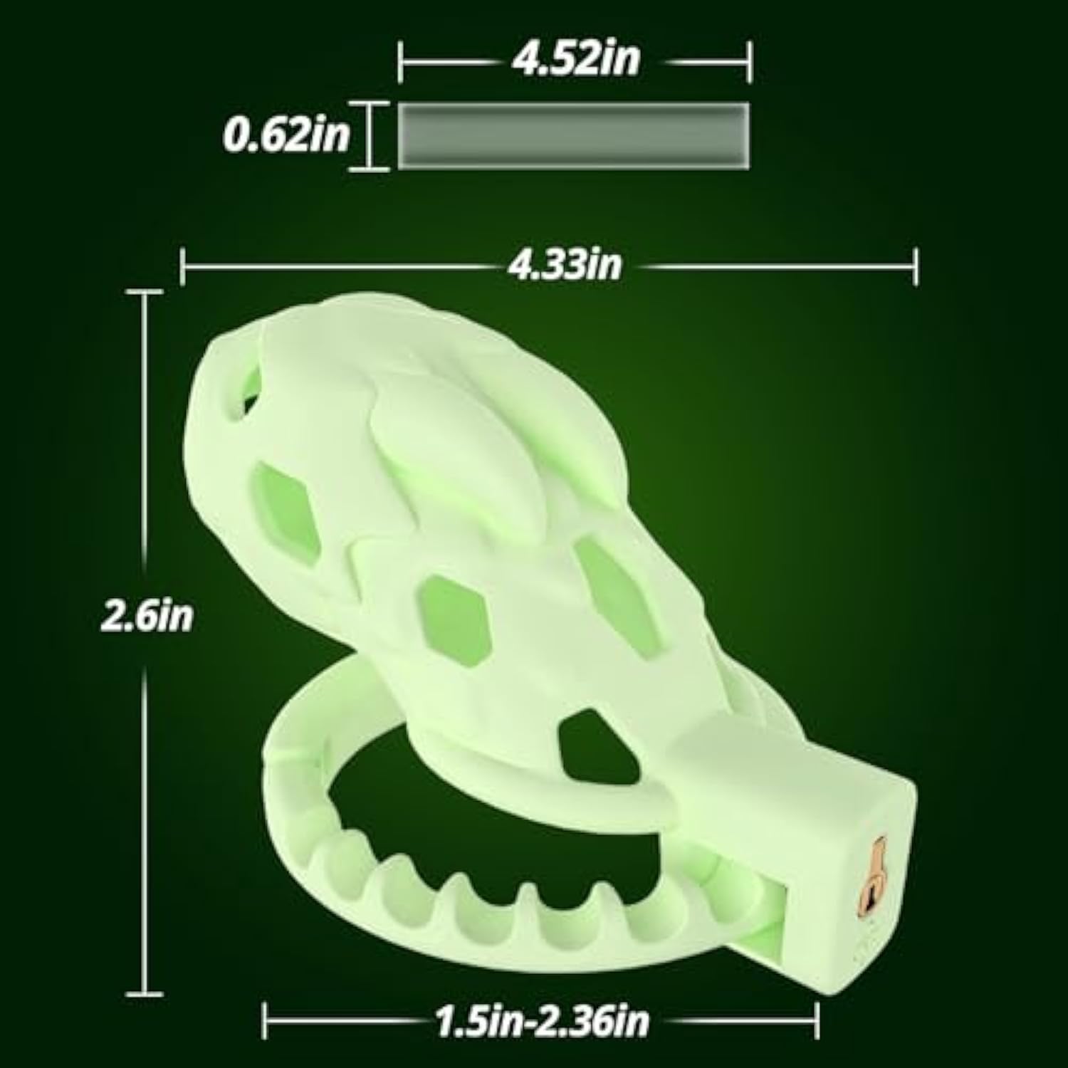 | Size Adjustable And Customized: The Chastity Cage Has 8 Adjustable Grooves That Can Be Adjusted Within A Range Of 1.5 To 2.36 Inches. This Allows You To Perfectly Customize The Penis Sleeve To Your Individual Needs And Provides A Secure And Comfortable Fit All Day Long. (Use It With The Hose On To Avoid The Serrated Teeth From Touching Your Skin.) | | Top Built In Lock :We'Ve Chosen A Clever Angle So You Can Get The Top Lock In And Out Quickly And Easily. The Built-In Lock At The Top Ensures That The Cage Is Well Connected To The Ring, Easy To Use And Won'T Break Easily. The Cage Holds The Penis Securely, Controls Pleasure And Keeps It In Check. | | Ergonomic Male Cock Cage: Hollowed Out Design Allows Your Penis To Breathe Freely, Even When Worn For A Long Time.The Unique Dinosaur Shape Not Only Looks Cool, But Also Increases The Wearer'S Confidence And Fun, Making The Abstinence Experience More Personalized And Fun! | | Convenient To Wear?The Male Chastity Belt Is Made Of High Quality Resin Material Which Is Lightweight And Sturdy. This Means It Won'T Have Any Problem Wearing It Outdoors. Every Detail Has Been Carefully Crafted To Ensure Comfortable Wearing. | | Confidential Packaging :To Protect Your Privacy, We Keep The Male Chastity Cage In A Neutral And Inconspicuous Package. No One But You Will Know What Is Inside. | |