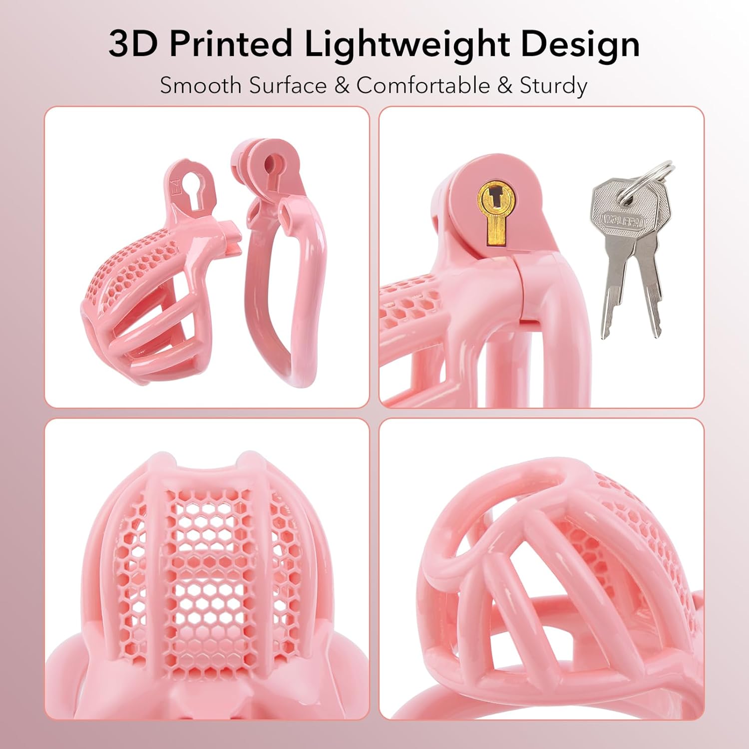 Lightweight 3D-Printed Chastity Cage – Pink Plastic Cock Cage with 4 Ring Sizes