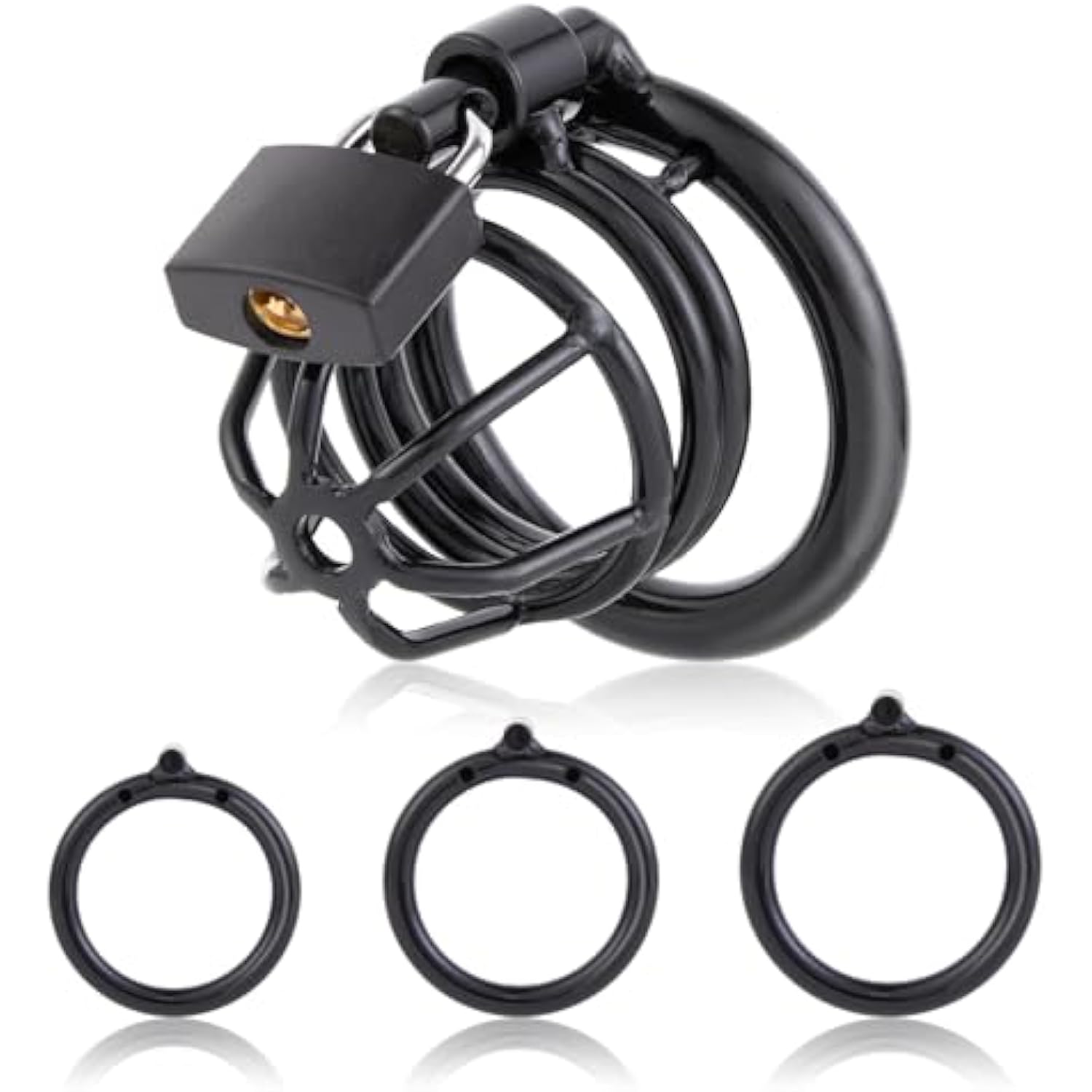 Male Cock Cage Chastity Device - Iron Chastity Cock Cage Device With 3 Active Sizes Rings Adult Sex Toy For Men Penis Exercise | 2 Keys And Invisible Lock Included | Extra-Small Size (Black)