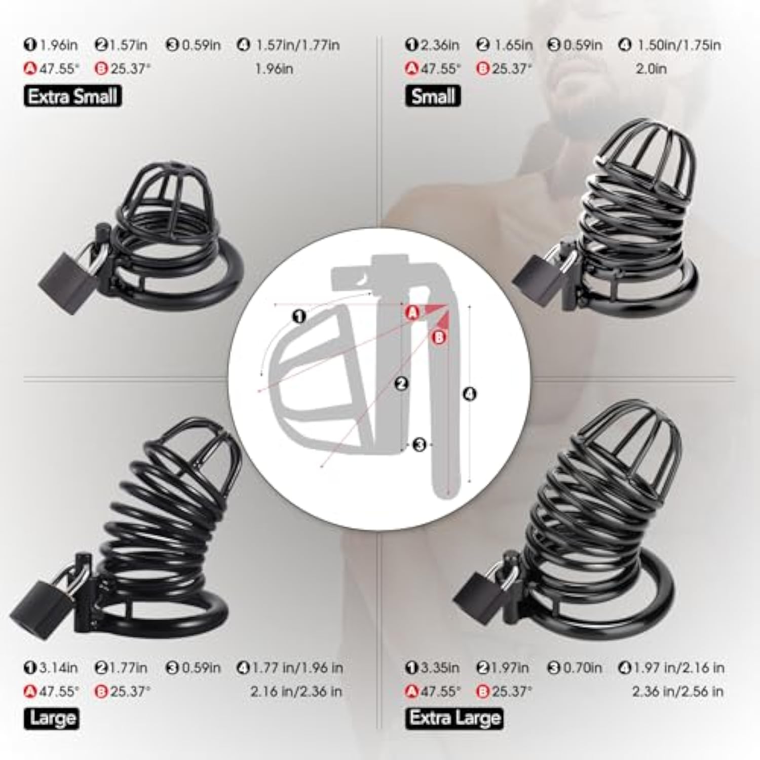 - Extra Small Size Chastity Cage - The Dimensions Of This Chastity Cage Are As Follows: Diameter Of The Cage Body: 3.58Cm/1.40Inch; Diameter Of The Ring: 4Cm/1.57Inch * 4.5Cm/1.77Inch * 5Cm/1.96Inch; Due To The Small Size, The Weight May Be Relatively Lig