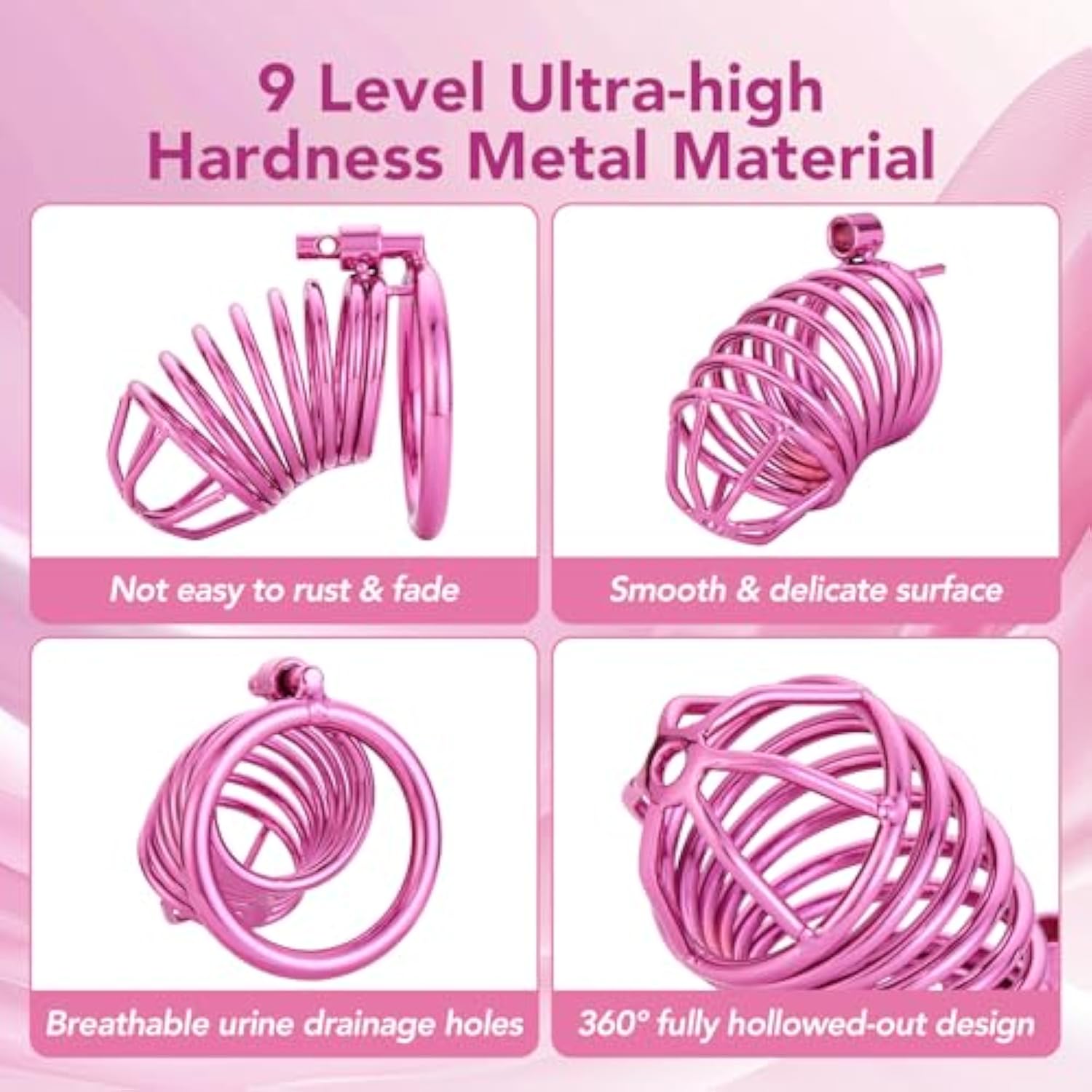 Male Cock Cage Chastity Device - Iron Chastity Cock Cage Device With 4 Active Sizes Rings Adult Sex Toy For Men Penis Exercise | 2 Keys And Invisible Lock Included | Extra-Large Size (Purple)