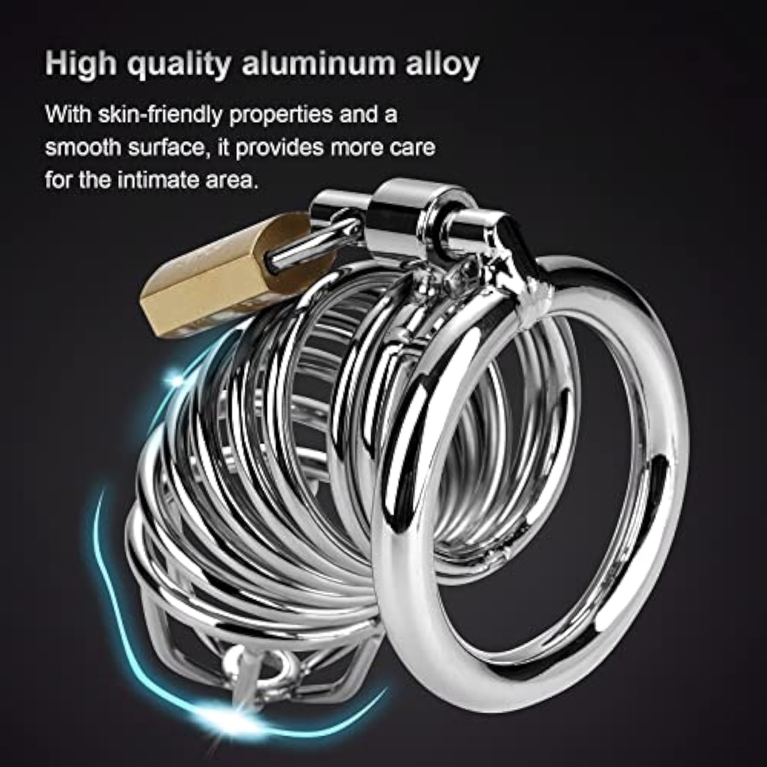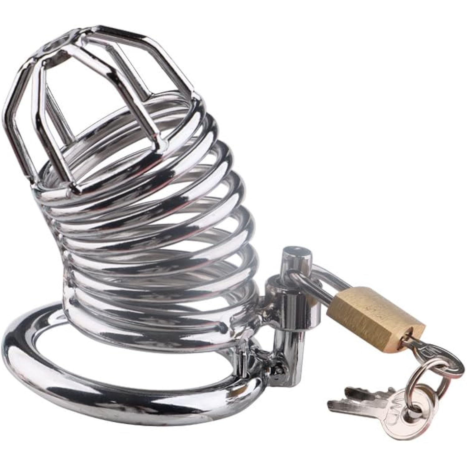 Male Cock Cage Chastity Device With 3 Sizes Of Rings,Key And Lock Included?Locked Cage Sex Toy,?Silver?
