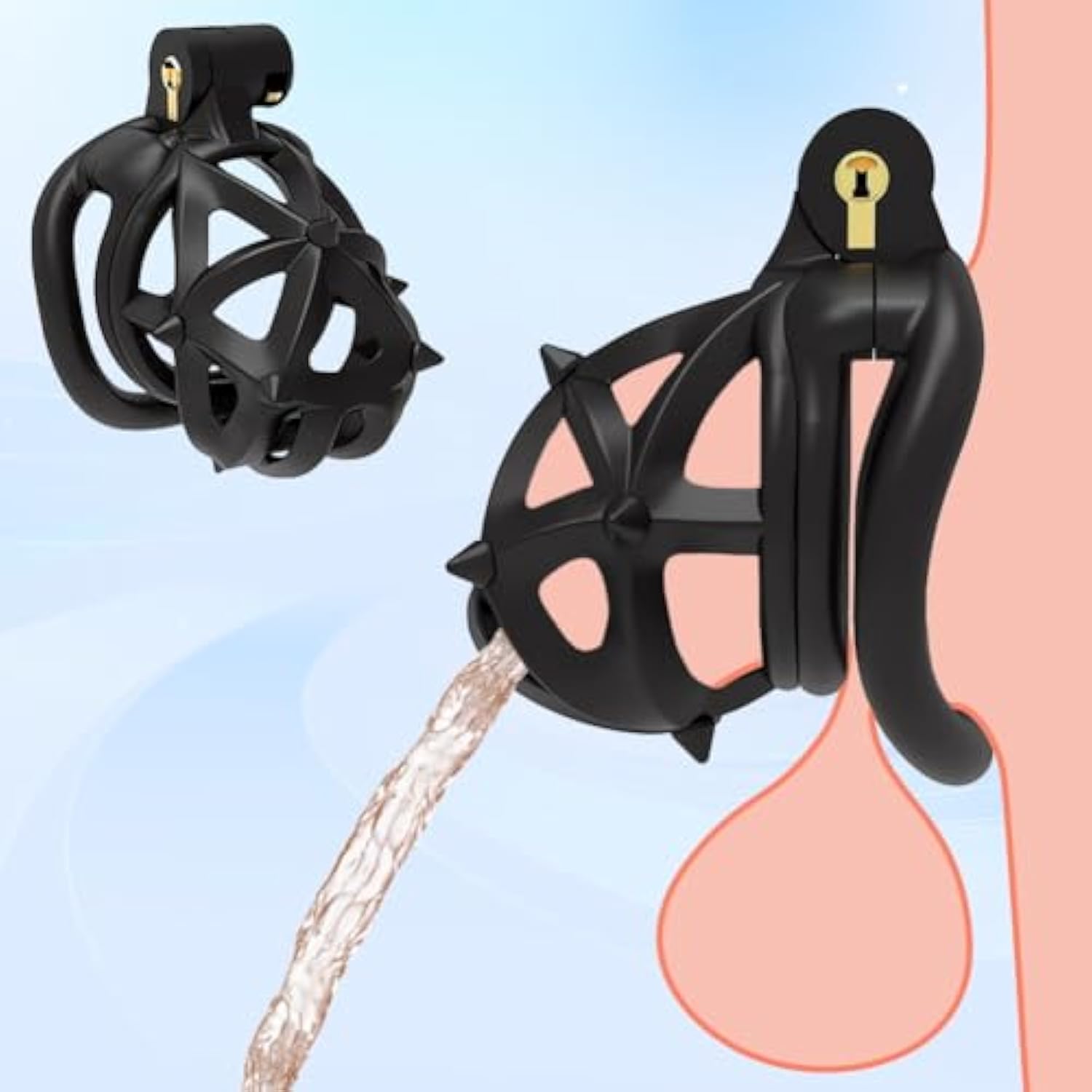 Male Cock Cage Chastity Device With Removable Silicone Spikes Fetish Tease Resin Chastity Locked Cage For Penis Exercise (Short)