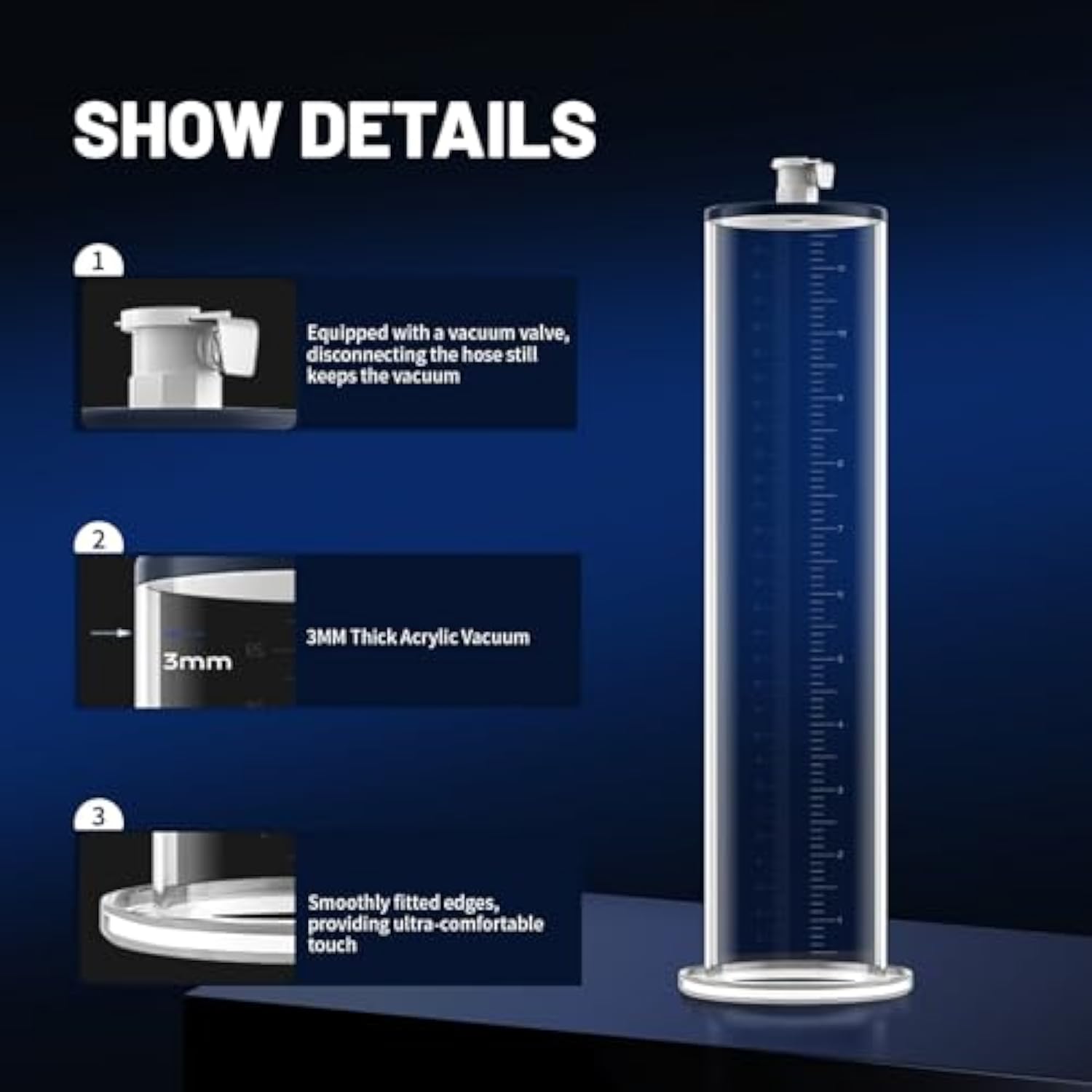 | Highest Quality Acrylic Cylinder With A Comfortable Flange: We Use The Highest Quality Acrylic Cylinder To Ensure Durability And Longevity. Additionally, We Have Incorporated A Comfortable Flange Design To Provide Users With A Better Seal. | | With A Flexible Silicone Hose: Our Penis Pump Kit Features A Silicone Hose That Is Pinch-Free And Allows For Unrestricted Airflow. This Means Users Can Enjoy A Smooth And Hassle-Free Experience. | | Clear Vacuum Tube With Universal Measurements: Our Vacuum Tube Is Transparent And Has Universal Measurements For Users To Easily Track Their Progress And Make Adjustments As Needed. 9 X 1.75 Inch Cylinder, It Is Designed To Accommodate Users Of All Sizes. | | Quick-Release Valve: The Pump Is Equipped With A Quick-Release Valve, Allowing For Easy Maneuverability And Effortless Release When You'Re Ready To Play. | | Easy-To-Use Pump Handle: Our Pump Handle Is Designed To Be User-Friendly, Featuring One-Handed Action. This Enables Users To Easily Control The Pressure And Frequency Of Suction. | |