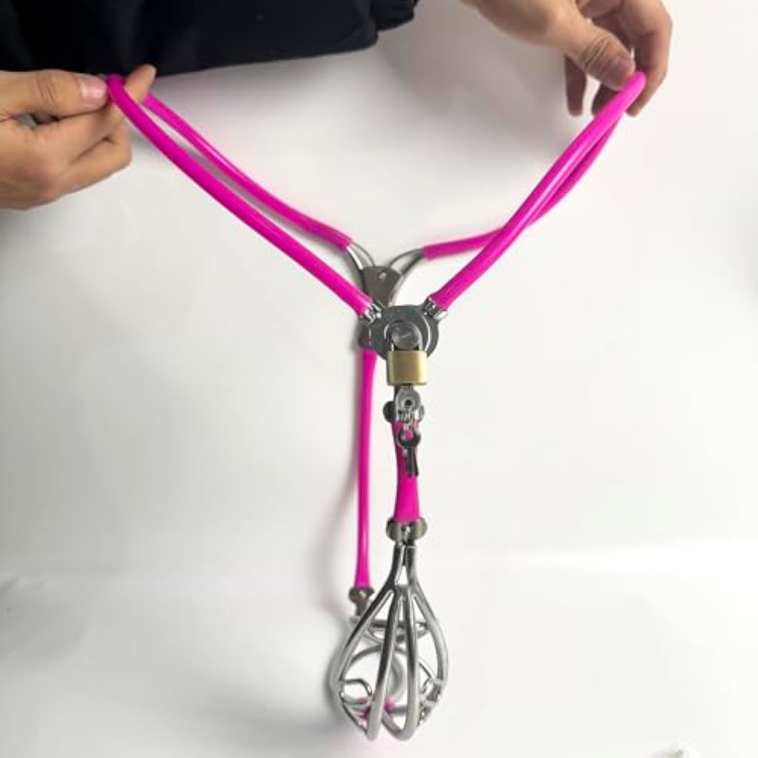 Male Invisible Chastity Belt Cage Stainless Steel Sexy Underwear Adjustable Device Hollow Bondage Sex Toy With Hole Bdsm (Pink, 60-90Cm)