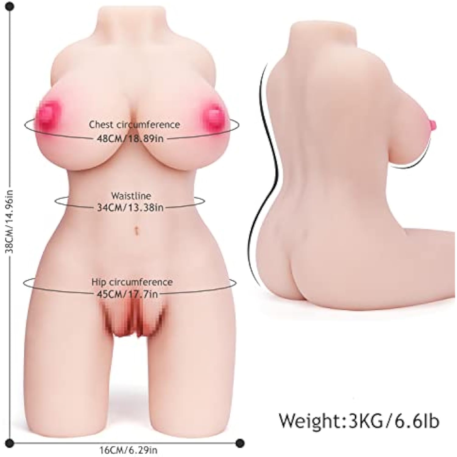 Male Masturbator Mini Sex Doll For Men, 3-In-1 Female Torso Love With Realistic 3D Texture Vagina & Tight Anus Men Pleasure, Sex Dolls Realistic Pocket Pussy Adult Sex Toy Orgasm (Flesh, 6.6Lb)
