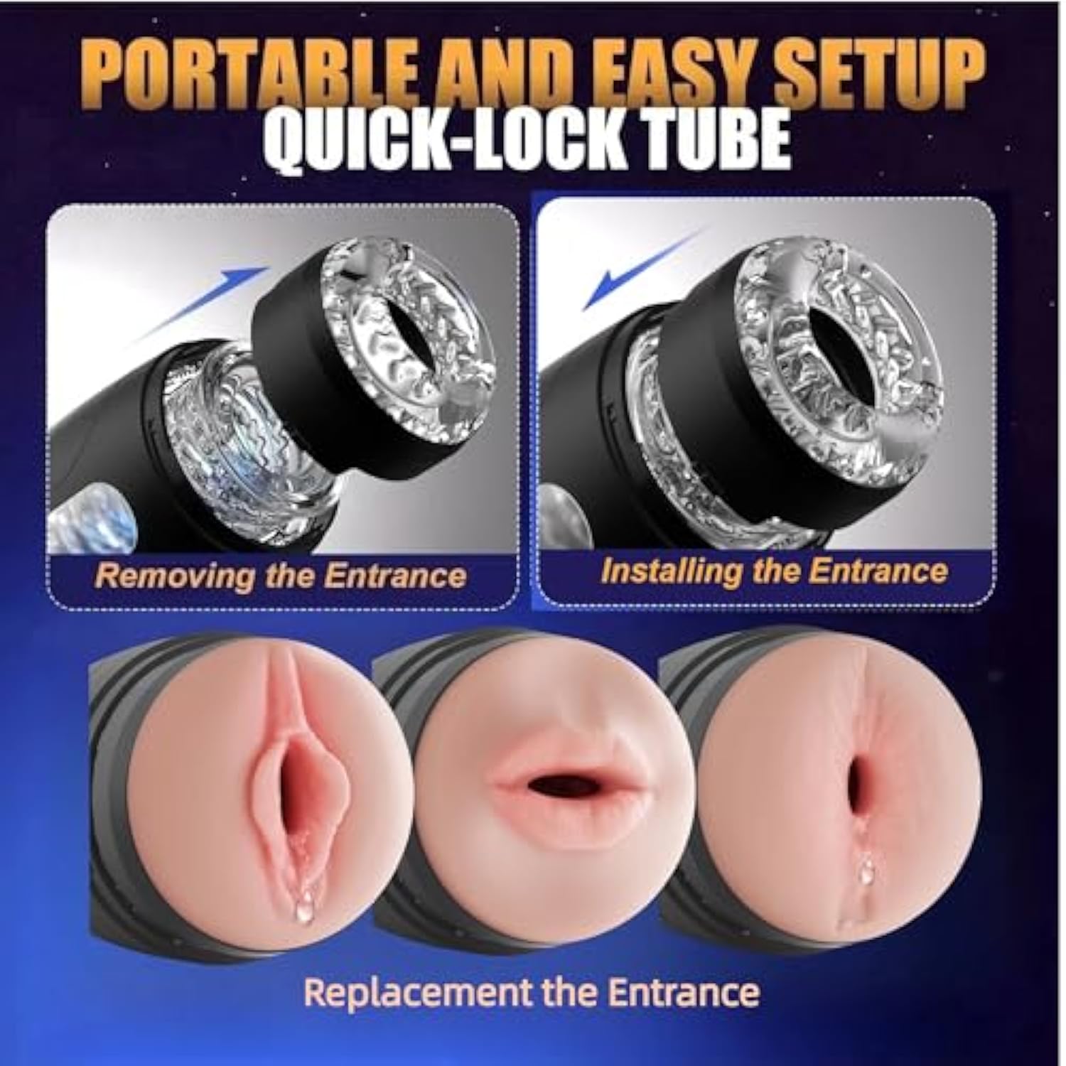 | 3 Different Replaceable Entrances For 3 Various Sex Toys For Men Experiences - Unlike Other Male Sex Toys, Our Male Masturbator Comes With 3 Additional Different Entry Experiences: Mouth Anal Clitoral Entrances. Each Of These Entrances Can Bring You Additional Novel Experiences: Sexy Thick-Lip Entrance Designed For Oral Sex; Tight Anal Passage For Stimulation And Excitement; Plump And Soft Pocketed Vagina For A Realistic Penetrative Experience That Will Drive You Wild | | Male Masturbator' Exclusive Replacement Entrances - The 3 Replacement Ports Are Customized For The Brand Of Penis Pump With 8 Thrusting 8 Spinning Modes - They Precisely Match The Sex Device Interface To Ensure A Seamless Connection, Bringing You A Different Experience And Allowing You To Experience More Sex Toys Fun For Less Money! For Example: Sex Doll?Pocket Pussy?Anal Stroker | | Easy Removal Simple Cleaning - Simply Turn Counterclockwise And Remove The Original Entrance Of The Penis Pump, Then Install The Replaceable Entrance By Turning It Clockwise For Use Of The Male Stroker Right Away. The Tpe Material Of The Entrances Features A Smooth, Non - Porous Surface, Making Cleaning A Hassle - Free Process. Just Rinse It With Mild Soap And Water, And It Will Be Perfectly Clean And Ready For Your Next Use When It Dries Naturally | | Soft And Realistic 3D Tpe Material - The Tpe Replaceable Entrances Crafted With High Quality 3D Technology, Offers Unparalleled Tactile Experience. The Material Boasts A Luxuriously Soft Texture, Designed To Provide Comfort During Use. Engineered With Durability In Mind, These Entrances Are Built To Withstand Regular Use, Maintaining Their Shape And Texture Over Time. Whether You'Re Replacing It For Everyday Use Wear And Tear, Or You Want To Add A New Experience To Sex Toys, It'S Ideal For You | | Discreet Packaging And Compact Portability - The Set Of 3 Interchangeable Entrances Is Securely Packaged In An Unmarked, Plain Box, Ensuring Privacy, That Keeps Your Personal Items Hidden From View. These Entrances Are Designed To Be Lightweight And Compact, Making Them Ideal For Travel Or Business Trips. Slip Them Into Your Bag Effortlessly And Indulge In Customized Pleasure Wherever You Go | |