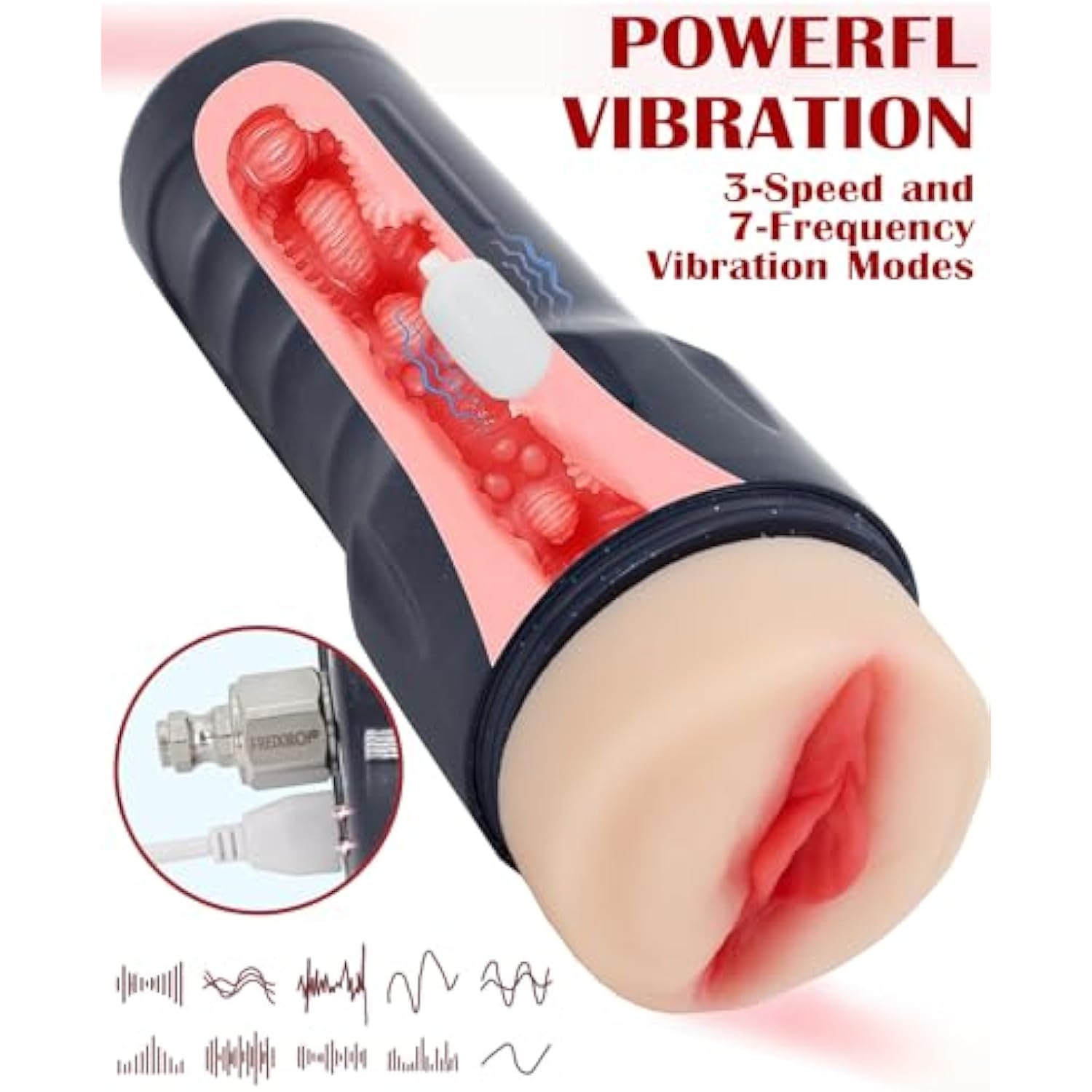 Male Masturbators Cup Accessories For “Fr Series” Premium Sex Machine Thrusting Gun, Adult Sex Toys 3D Realistic Texture Pocket Pussy 3-Speed & 7-Frequency Vibration Modes (Male Masturbator)