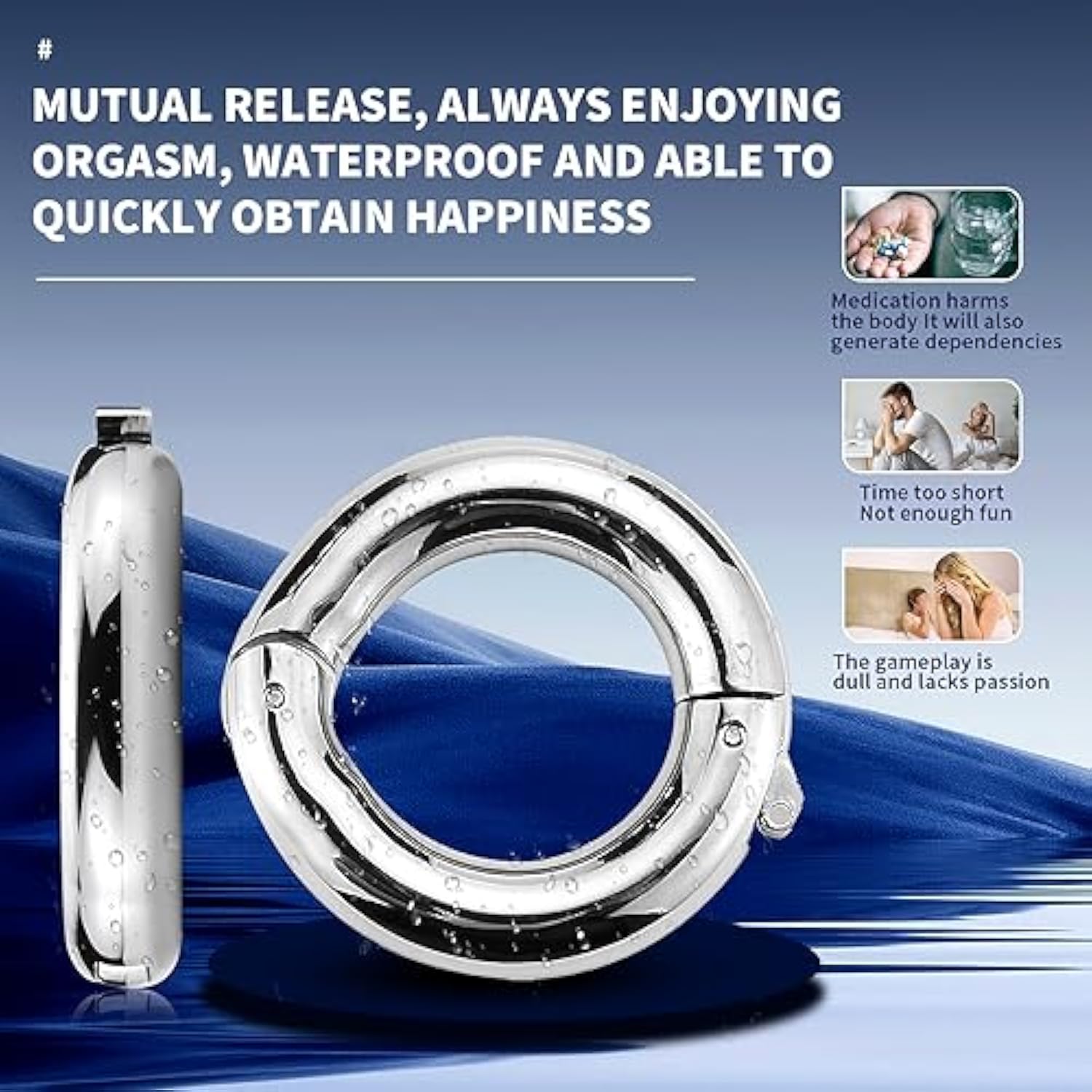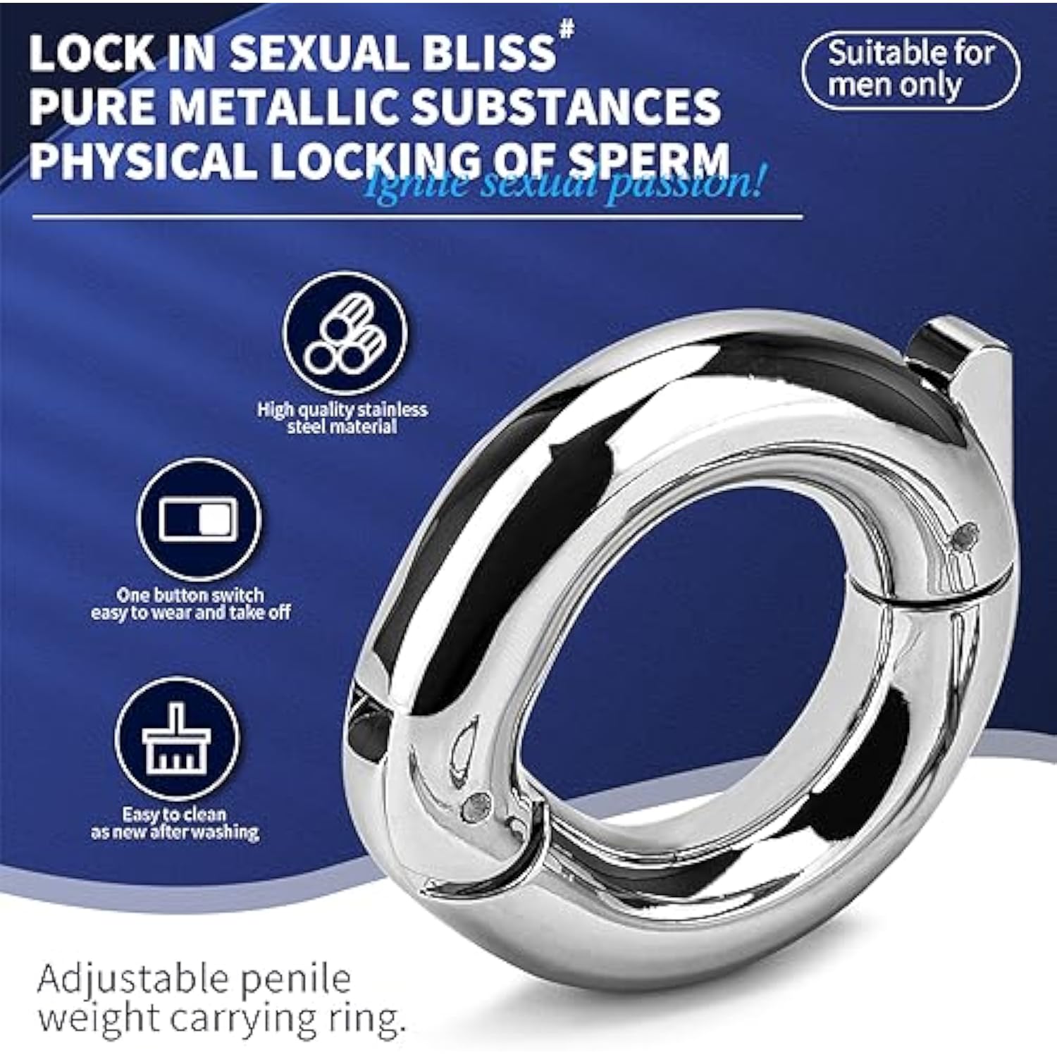 Male Penis Cock Ring Adujustable Size Delay Ring Stainless Steel Penis Ring Heavy Stretcher Adult Sex Toys(40Mm)