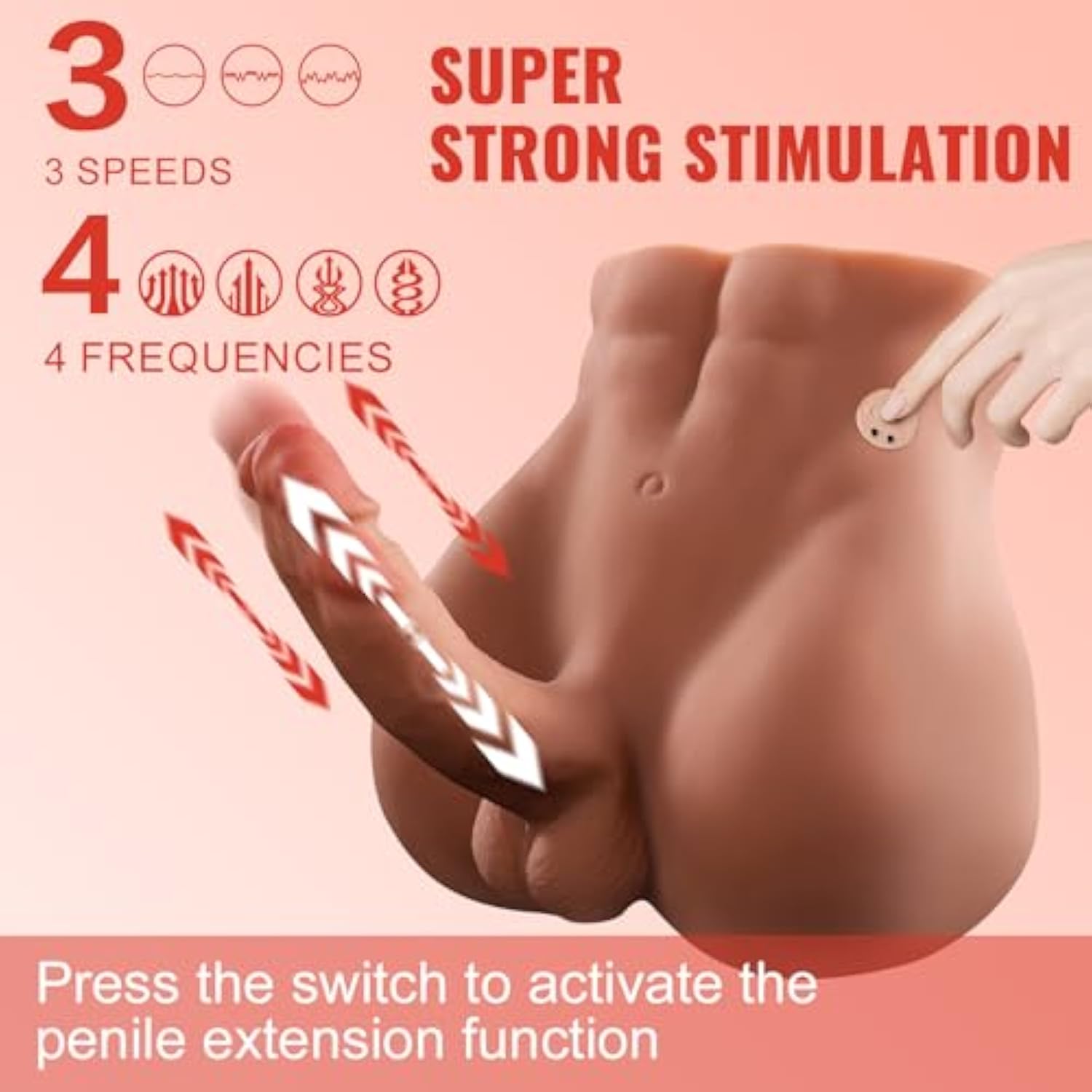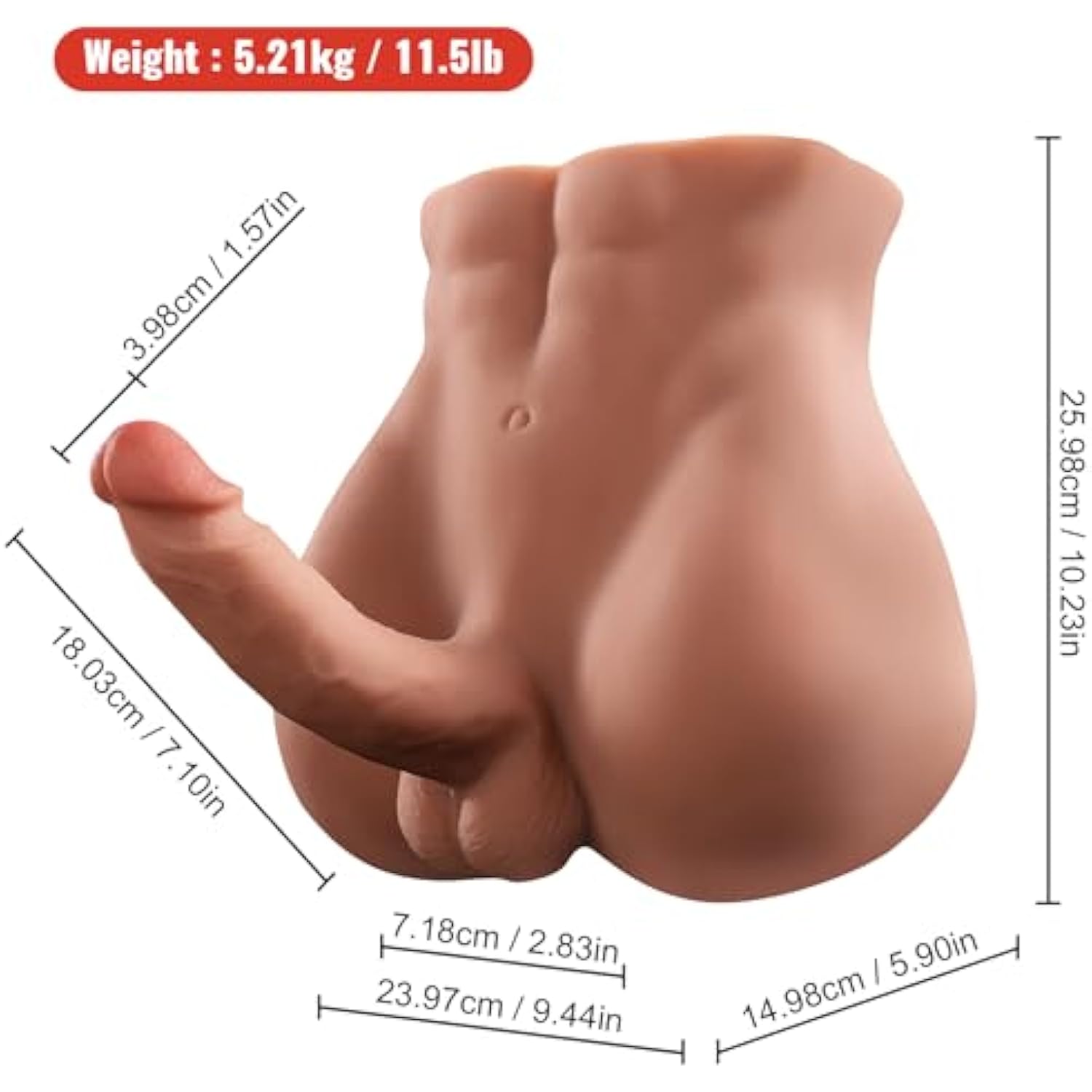 Male Sex Doll For Women With 7.1In Telescoping Huge Dildo, 11.5Lb Realistic Torso Sex Dolls For Men With Tight Anal, 2 In 1 Unisex Masturbator Sex Toy For Gay Couple, Brown