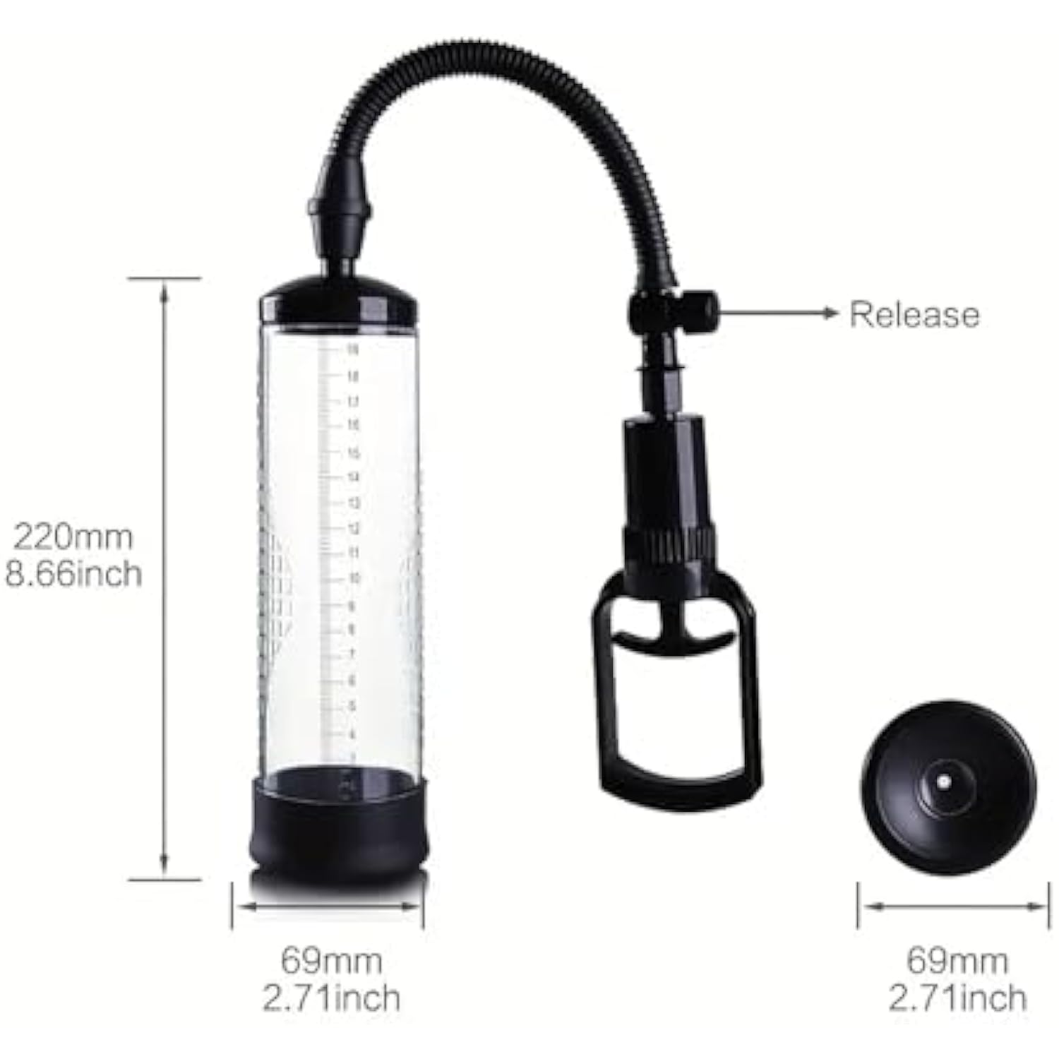 Manual Penis Pump - Penis Enlargement Pump With Clear Cylinder Tube & Precision Scale,8.7 Inch Vacuum Cock Pump With Release Lever, Soft Dick Pump With 3 Sleeves, Penis Extender Training Male Sex Toys