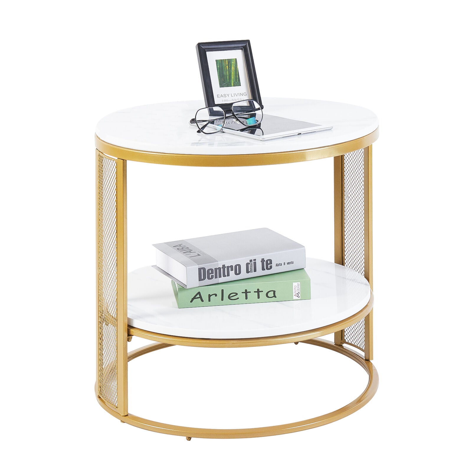 Marble End Table Sofa Side 2Tier End Storage Shelf Living Room Bedroom Furniture