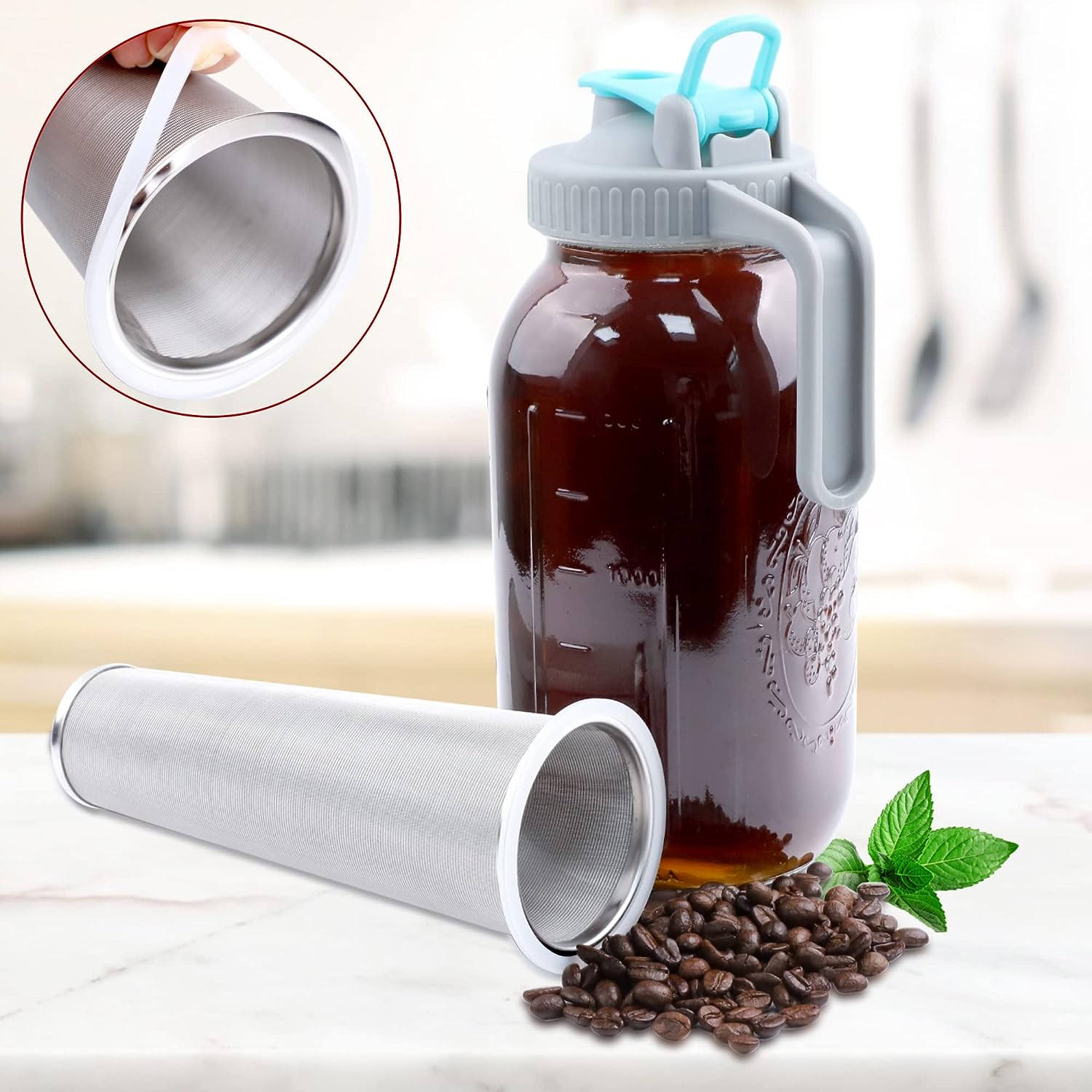 - 🍸Premium Cold Brew Filter : The stainless steel coffee filter is constructed of premier quality mesh, exquisite and durable, could prevent coffee grounds from entering the jar, makes the iced coffee taste better.