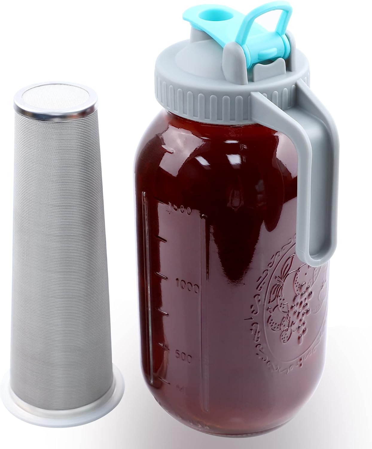 - 🍸Leak Proof & Airtight Storage : The 64 oz cold brew coffee maker mason jar with silicone seal in the pour spout lid will provide the exclent excellent air tight. Leak proof and keep your drinking like cold brew coffee, Iced Tea fresh and tasty for much longer.