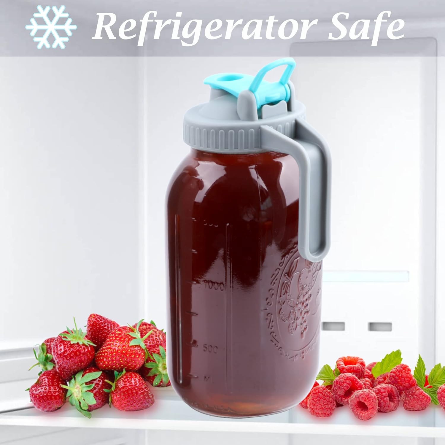 - 🍸Easy To Use : The ergonomically designed thicken handle could support the weight of a full jar, without bending at all and easy to hold and use. The flip cap stays open and won't get in your way when you pouring or drinking. The hand ring makes it easy to carry when you go out for picnic hiking or climbing.