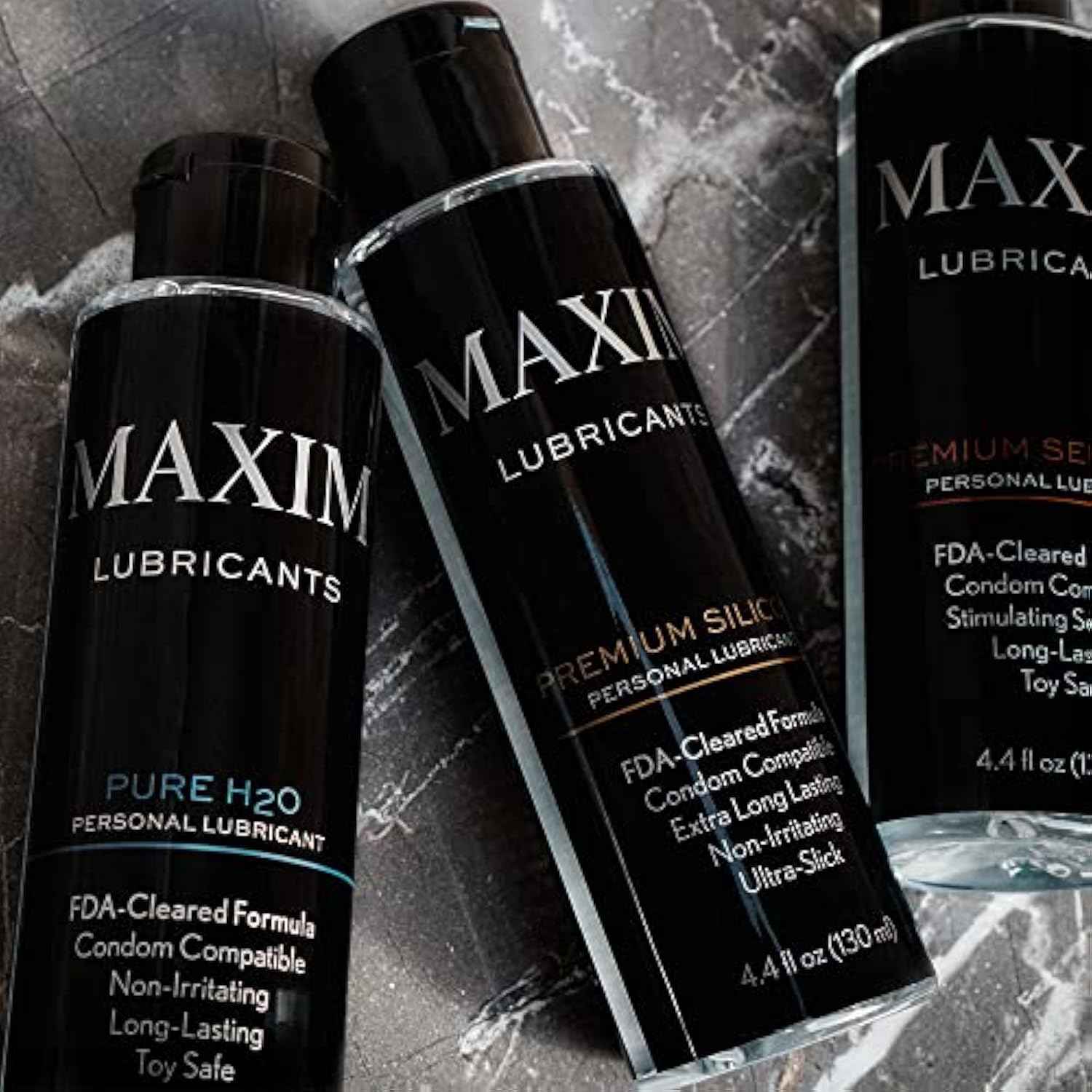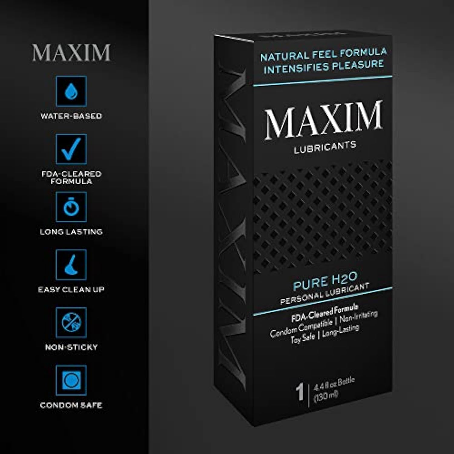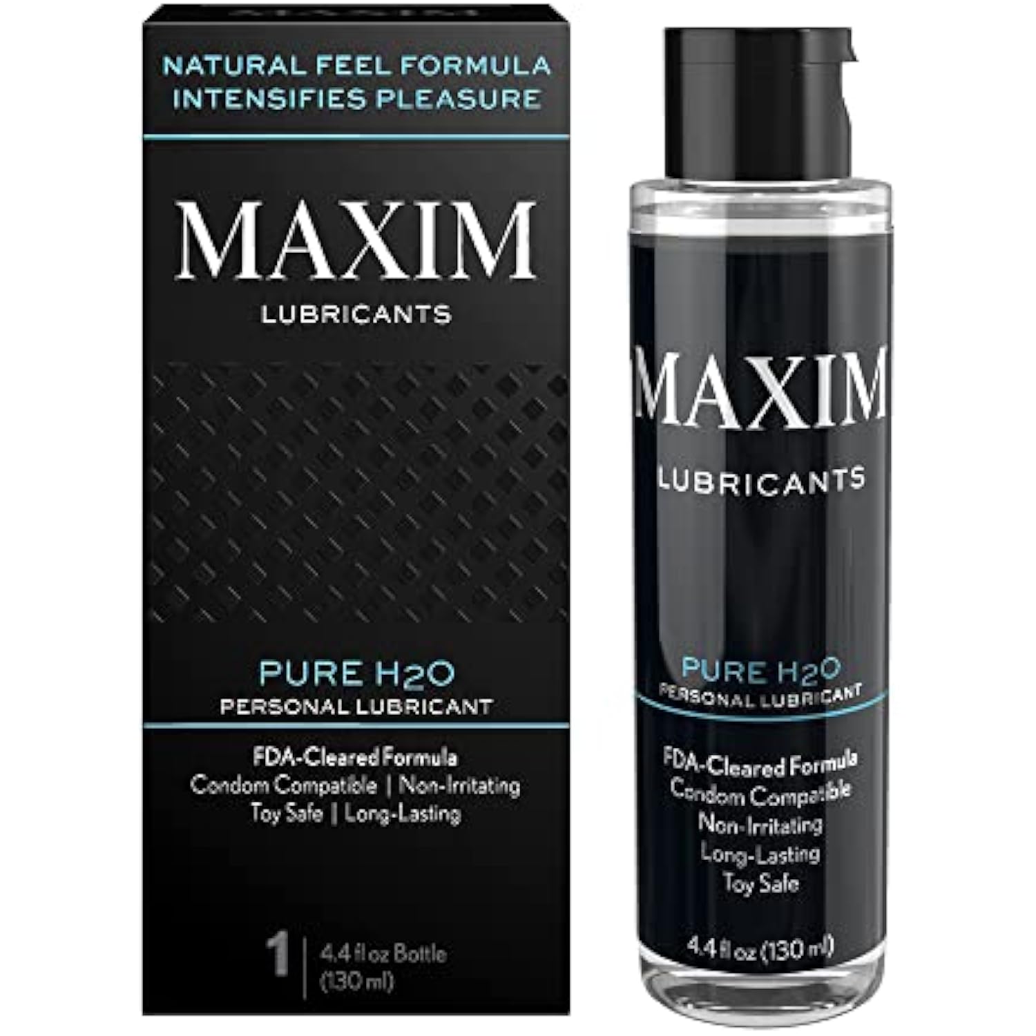 Maxim Pure H2O Lubricant, Water-Based, Premium Cleared Formula, Long-Lasting, Non-Sticky, Non-Irritating, Compatible With Toys And Condoms, 4.4 Fl Oz / 130 Ml, Topical Use Only