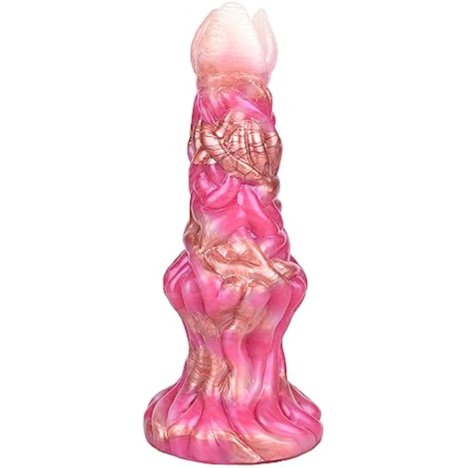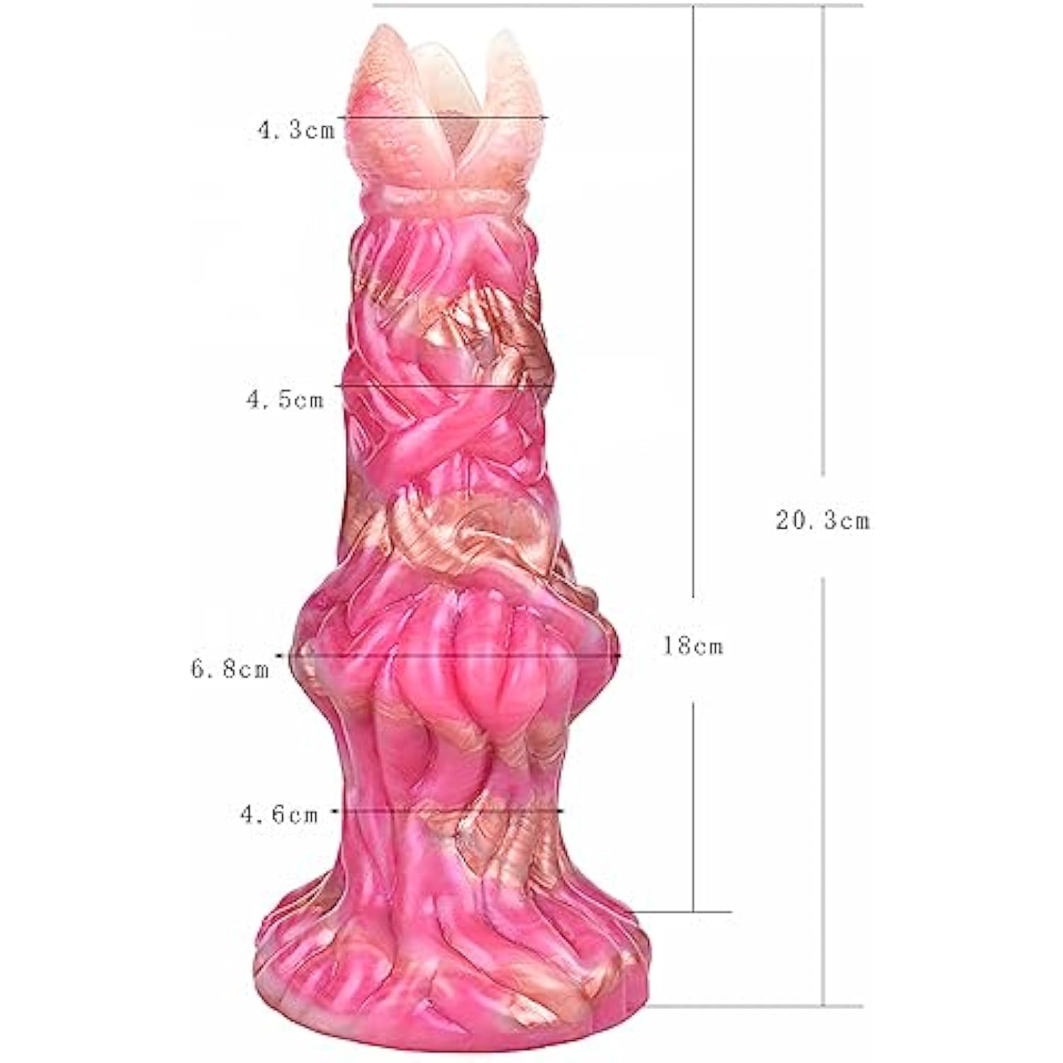 Medium Size Dragon Colorful Monster Silicone Dildo Anal Plug Soft Flexible Alien Style Knotty Fantasy (Rose-Red)