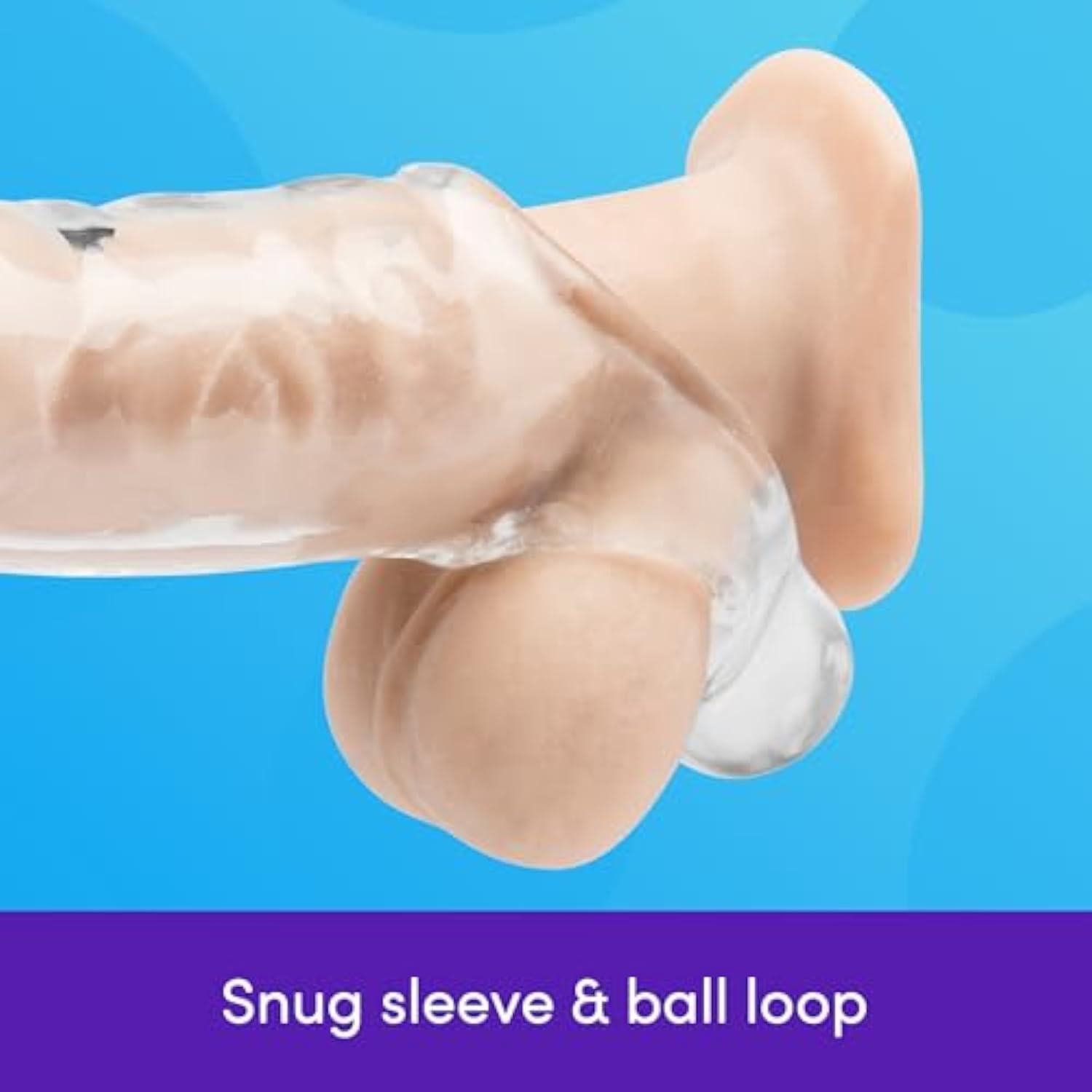 Mega Mighty Thick Penis Sleeve | 1-3 Extra Inches Penis Extender With Ball Loop | Realistic Sexual Stimulation Device | Couples Cock & Girth Enhancer Adult Sex Toys For Men | Clear
