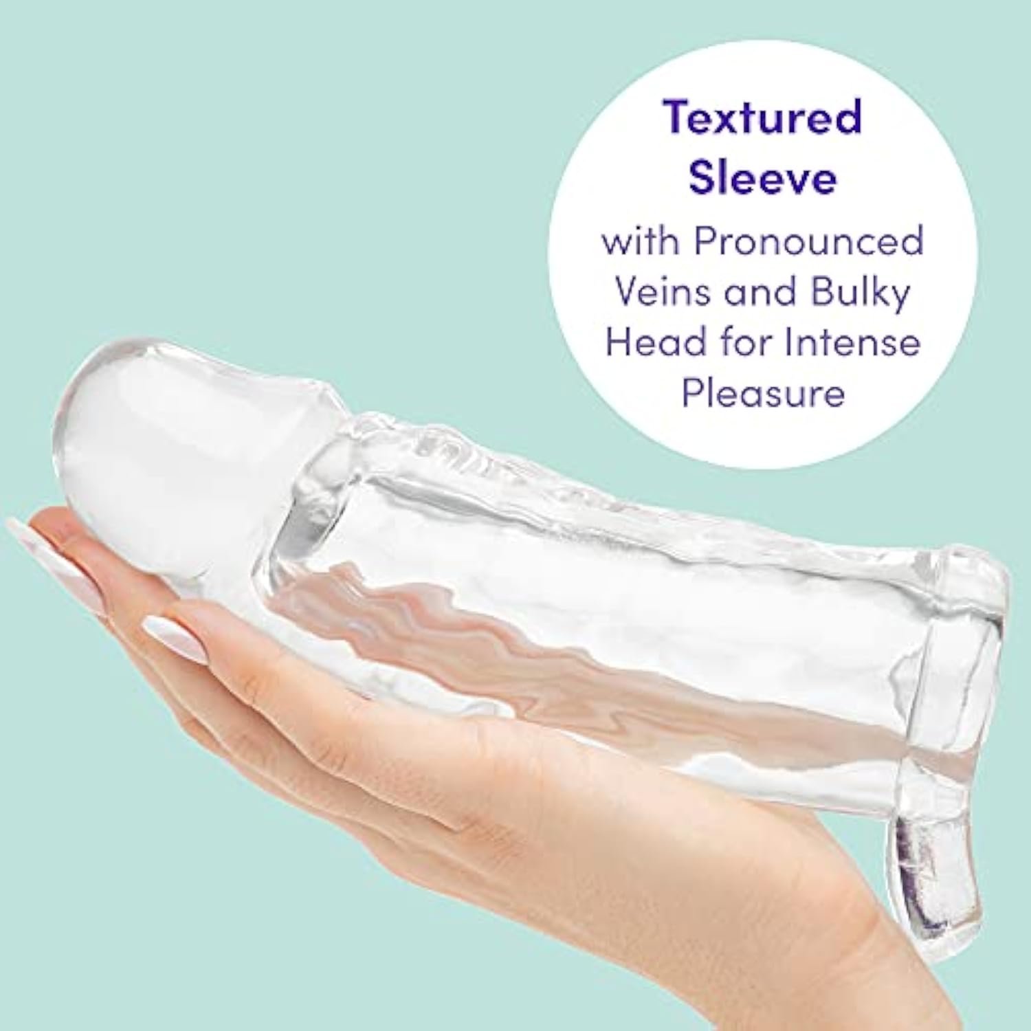 Mega Thick Penis Sleeve | 2 Extra Inches Penis Extender With Ball Loop | Girthy Realistic Sexual Stimulation Device | Couples Cock Enlarger Adult Sex Toys For Men | Clear